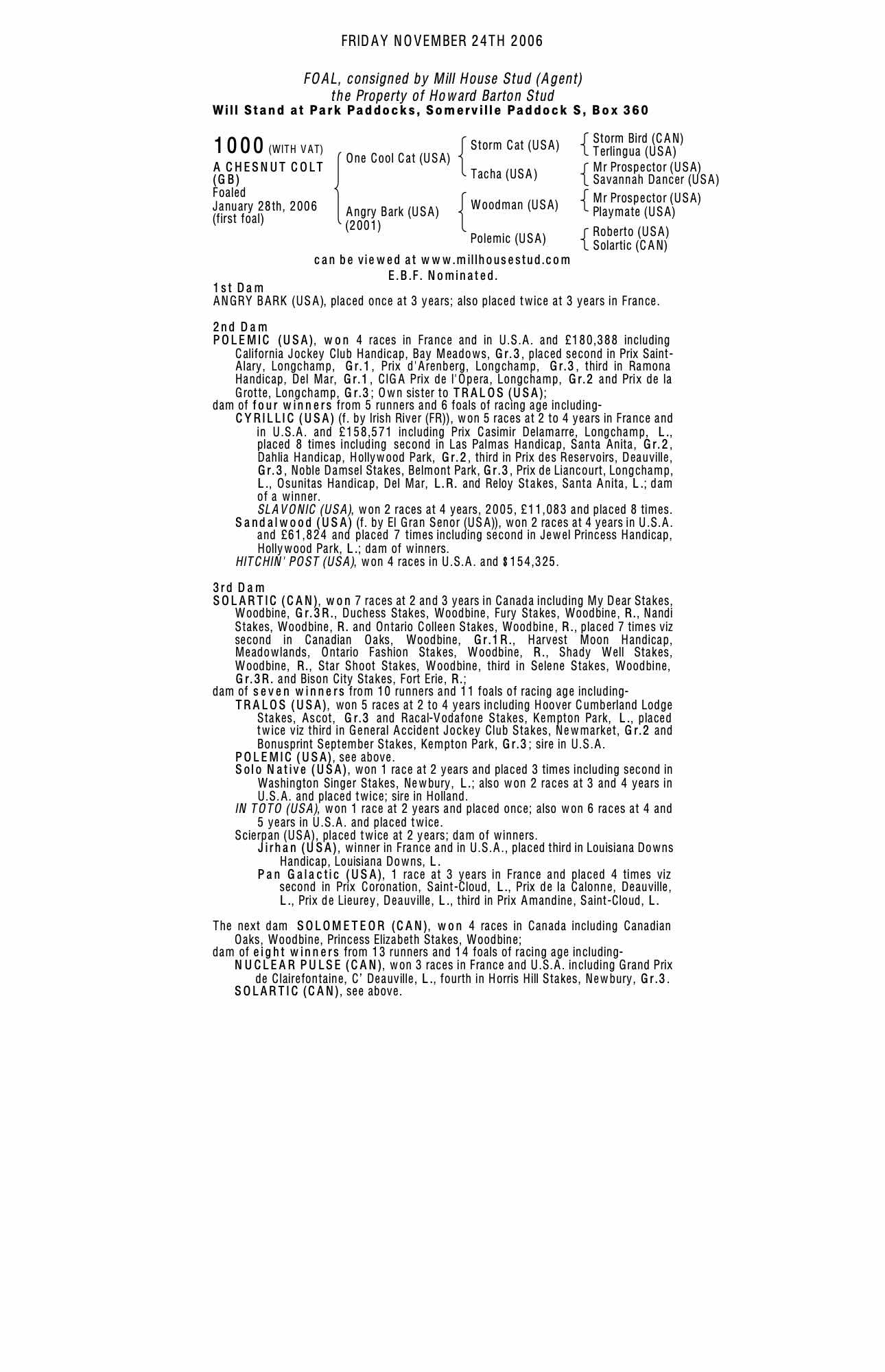 October Yearling Sale, Book 1 2007 lot 551, East Burrow Farm=>R Millman 32,000 gns