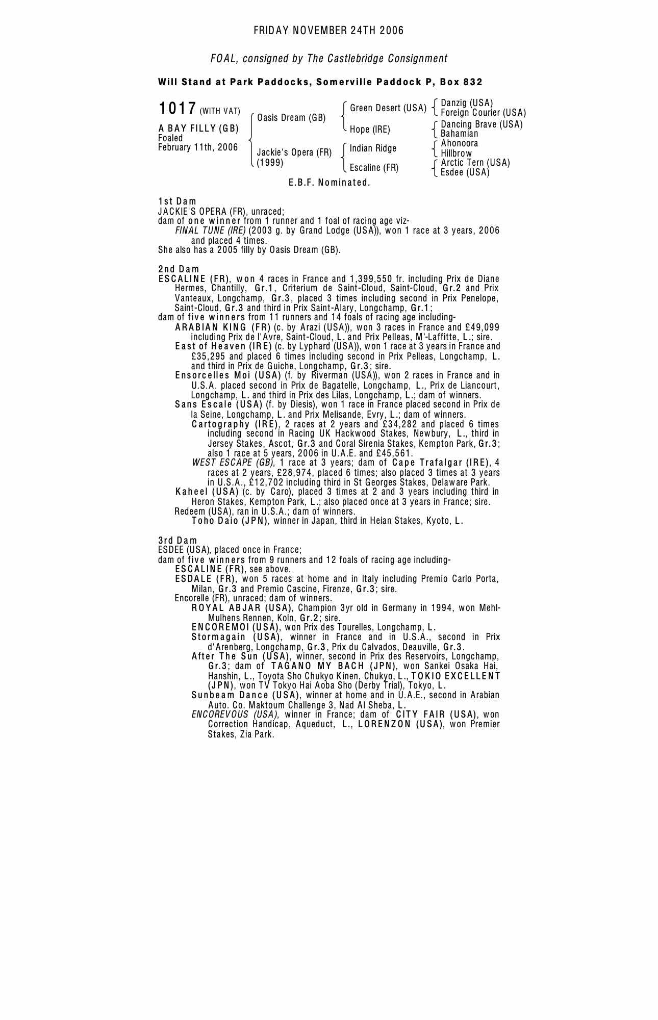 October Yearling Sale, Book 2 2007 lot 783, Whitehall Stud, Ireland=>D Wachman 300,000 gns