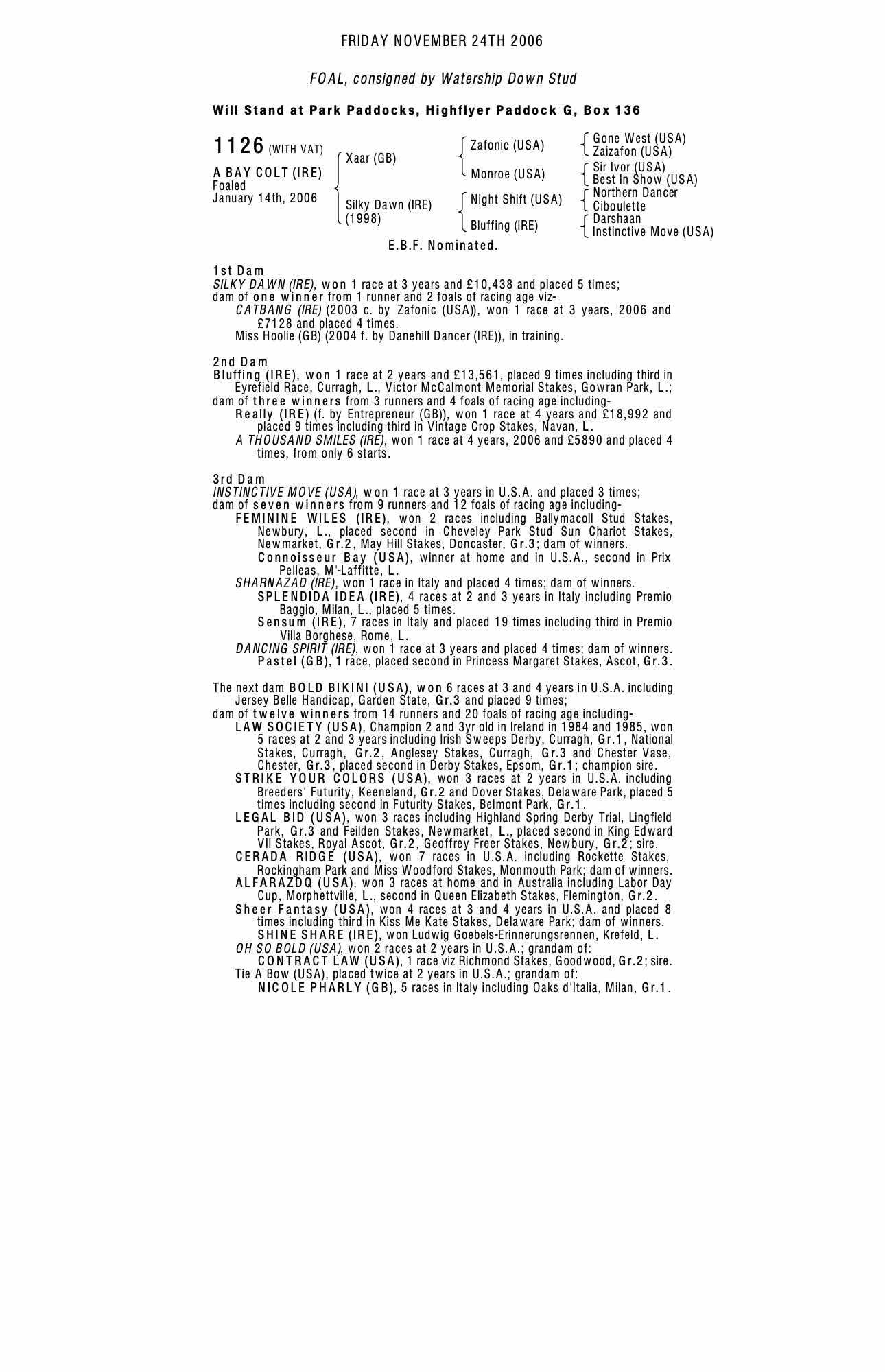 Consignor: Watership Down Stud