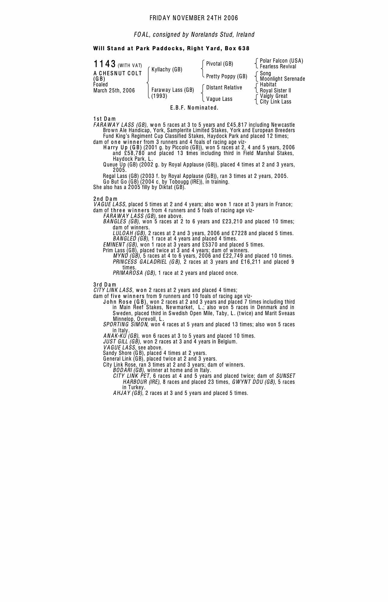 Consignor: Norelands Stud, Ireland