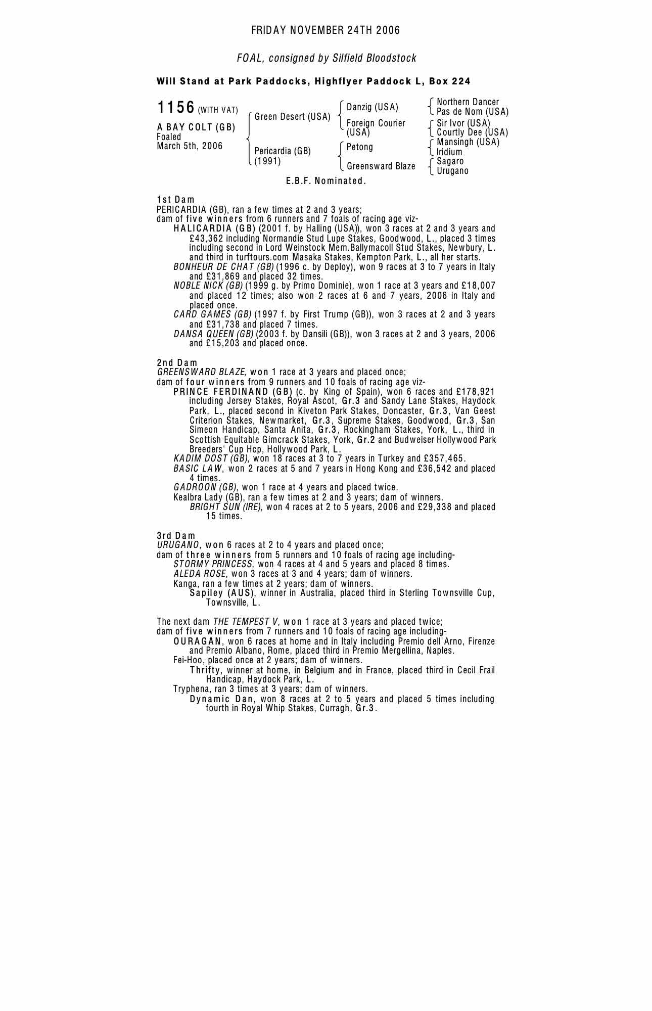 December Foal Sale 2001 lot 506 F. by Halling (USA) , Silfield Bloodstock=>Michael Buckley 17,000 gns