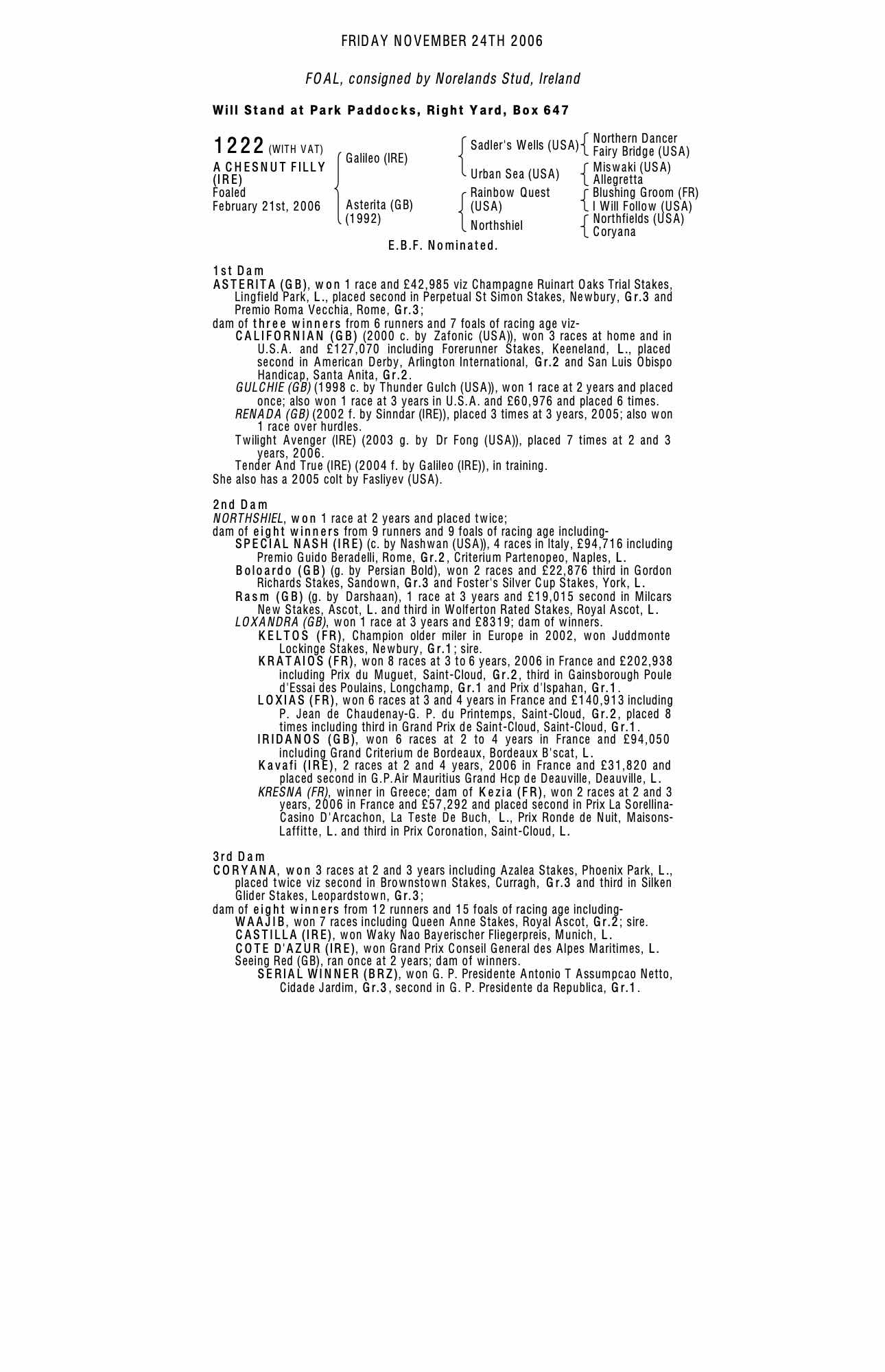 December Yearling Sale 2005 lot 222 F. 2004, Norelands Stud, Ireland=>Margaret O'Toole 60,000 gns