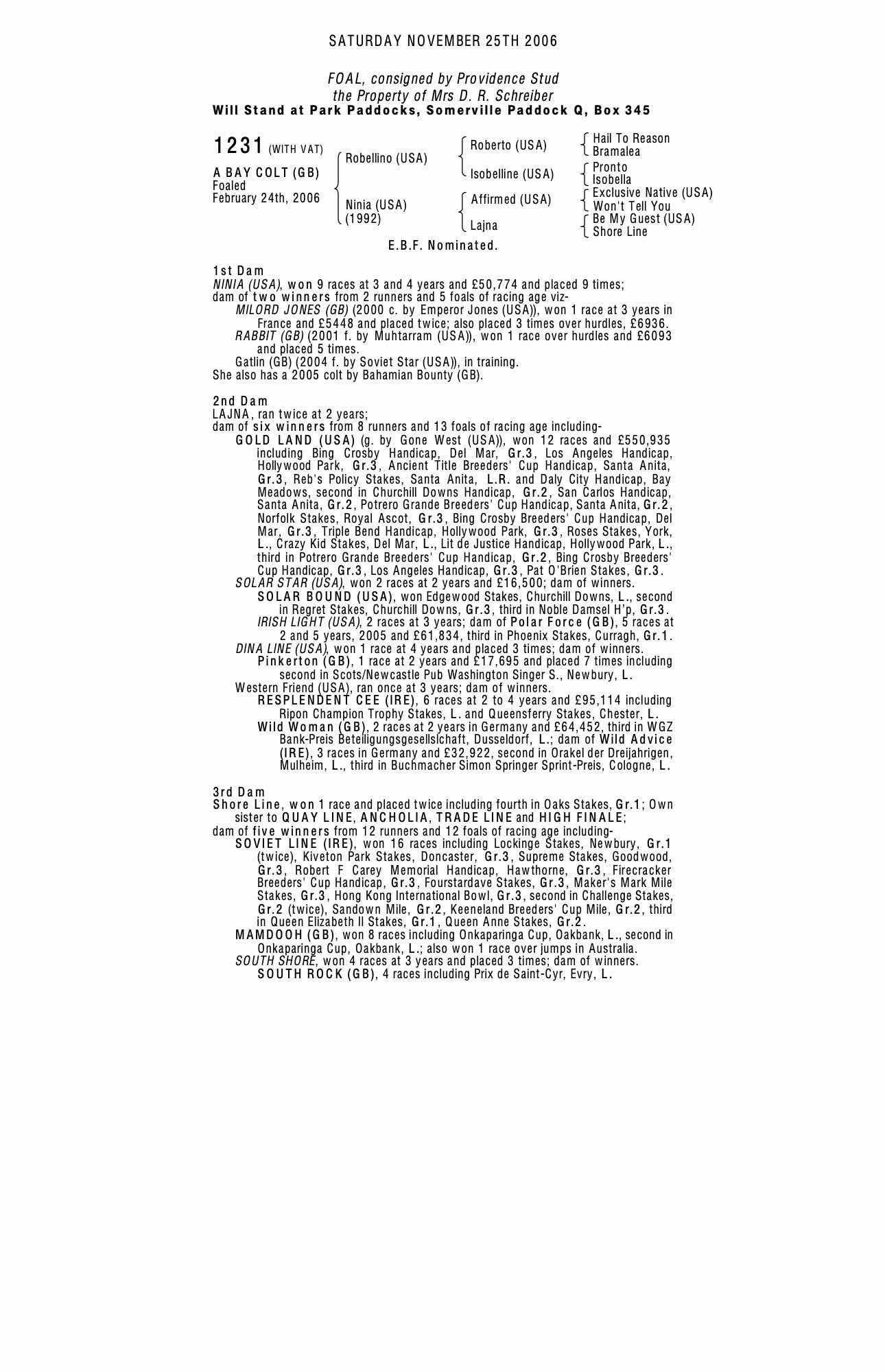 October Yearling Sale, Book 2 2006 lot 1405 C. by Bahamian Bounty (GB) 2005, Headfield Farm Ltd, Ireland=>MH Tompkins 22,000 gns