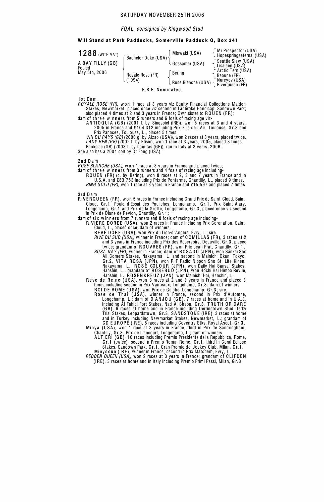 December Mare Sale 2006 lot 2738 Banksiae (GB) (F. by Lomitas (GB)), Voute Sales Ltd. (Agent)=>Summerville Bloodstock 7,000 gns