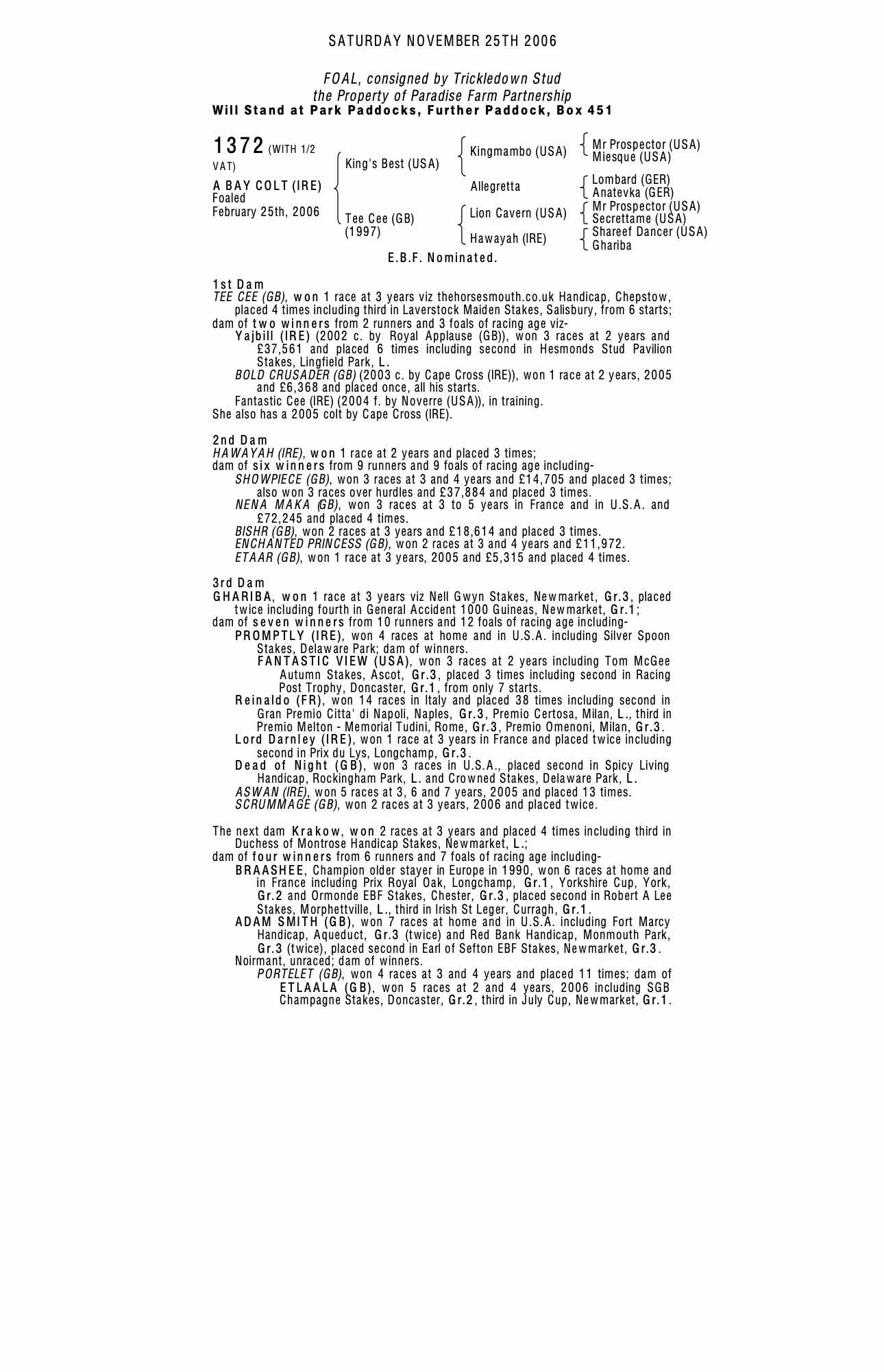 December Foal Sale 2005 lot 1461 C. by Cape Cross (IRE) 2005, Trickledown & Paradise Farm Studs=>Meadowlands Stud 90,000 gns
