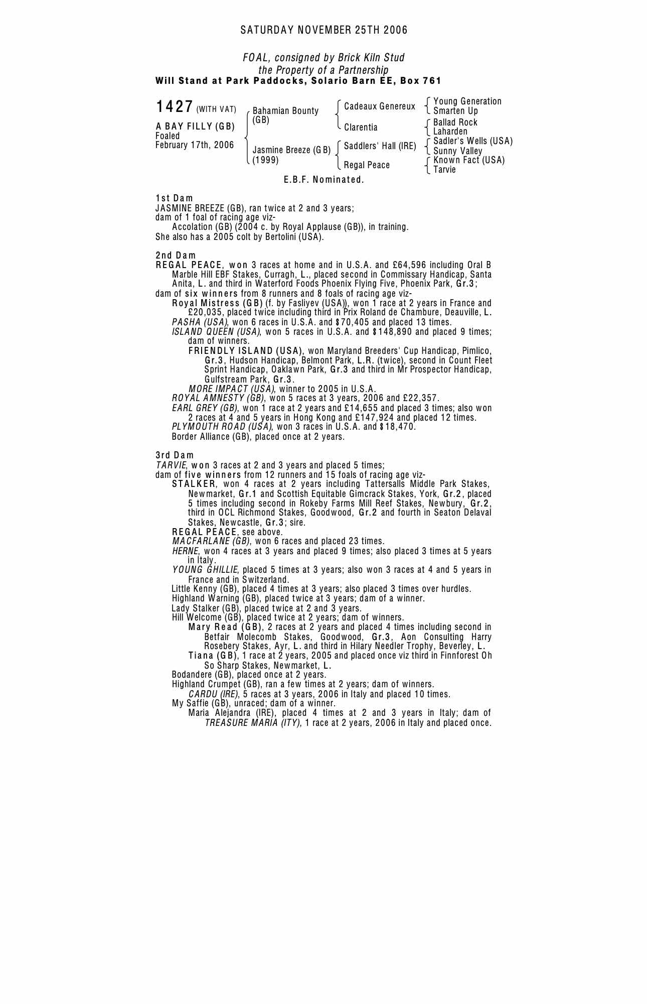 October Yearling Sale, Book 3 2007 lot 1392, Arglo House Stud, Ireland (Agent)=>Lot Not Sold 17,000 gns