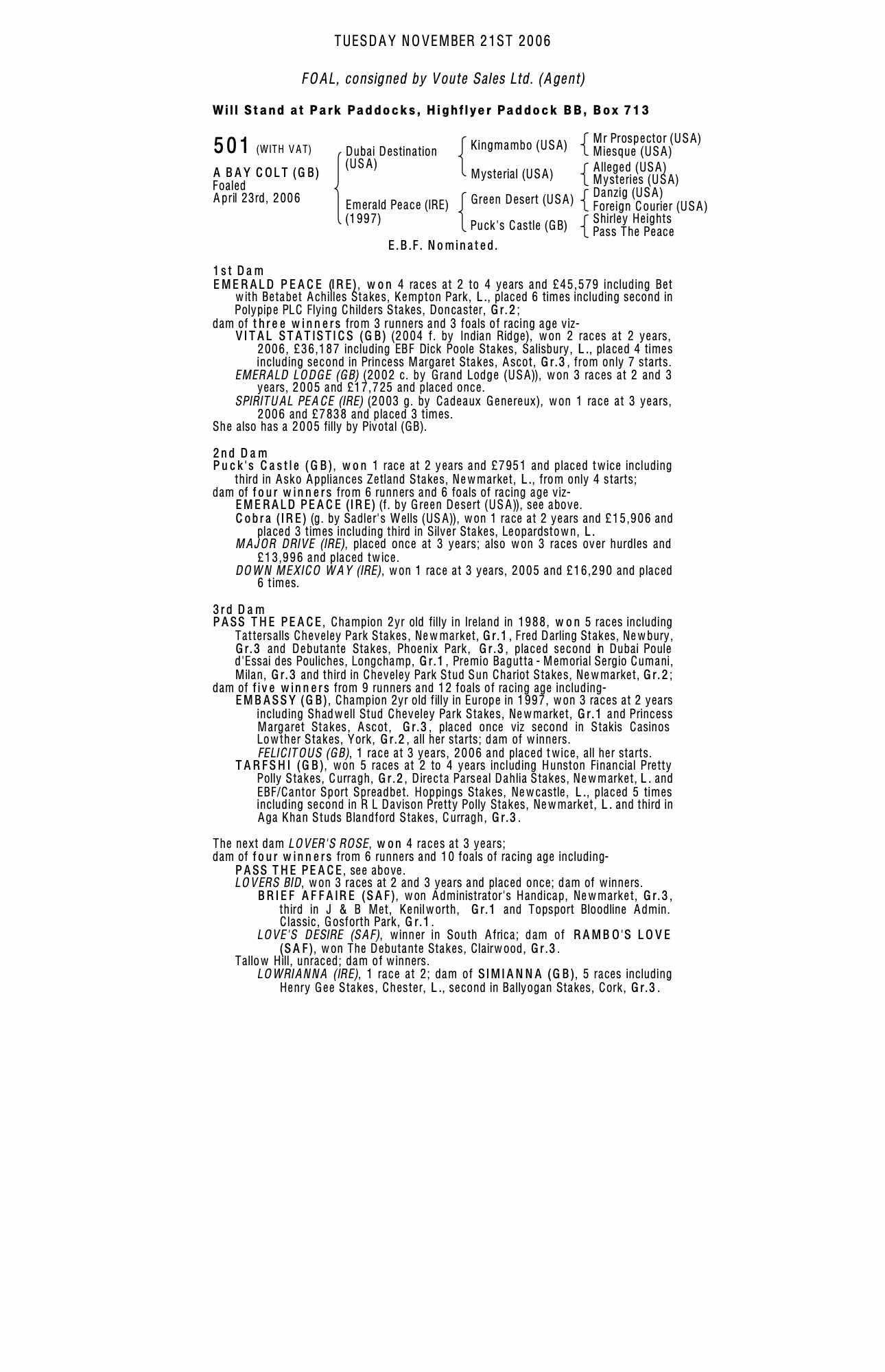 July Sale 2009 lot 98 Carved Emerald (GB) (F. by Pivotal (GB)), Castlemartin Stud, Ireland=>Suzanne Roberts 40,000 gns