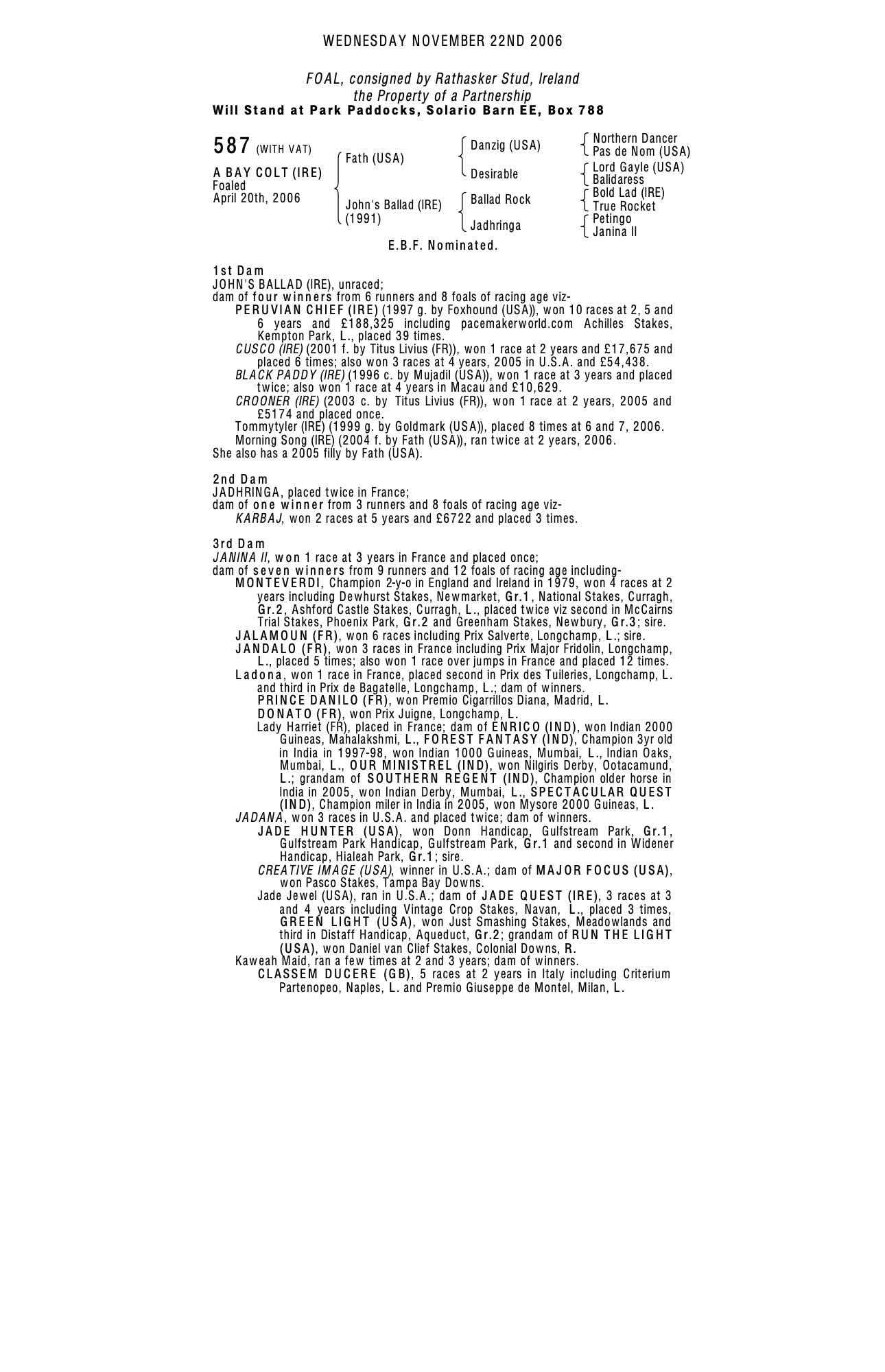 November Breeders Flat Sale 2011 lot 143 Last Shaambles (IRE) (M. by Shaamit (IRE)), Desert Gallops=>Lot Not Sold €9,500
