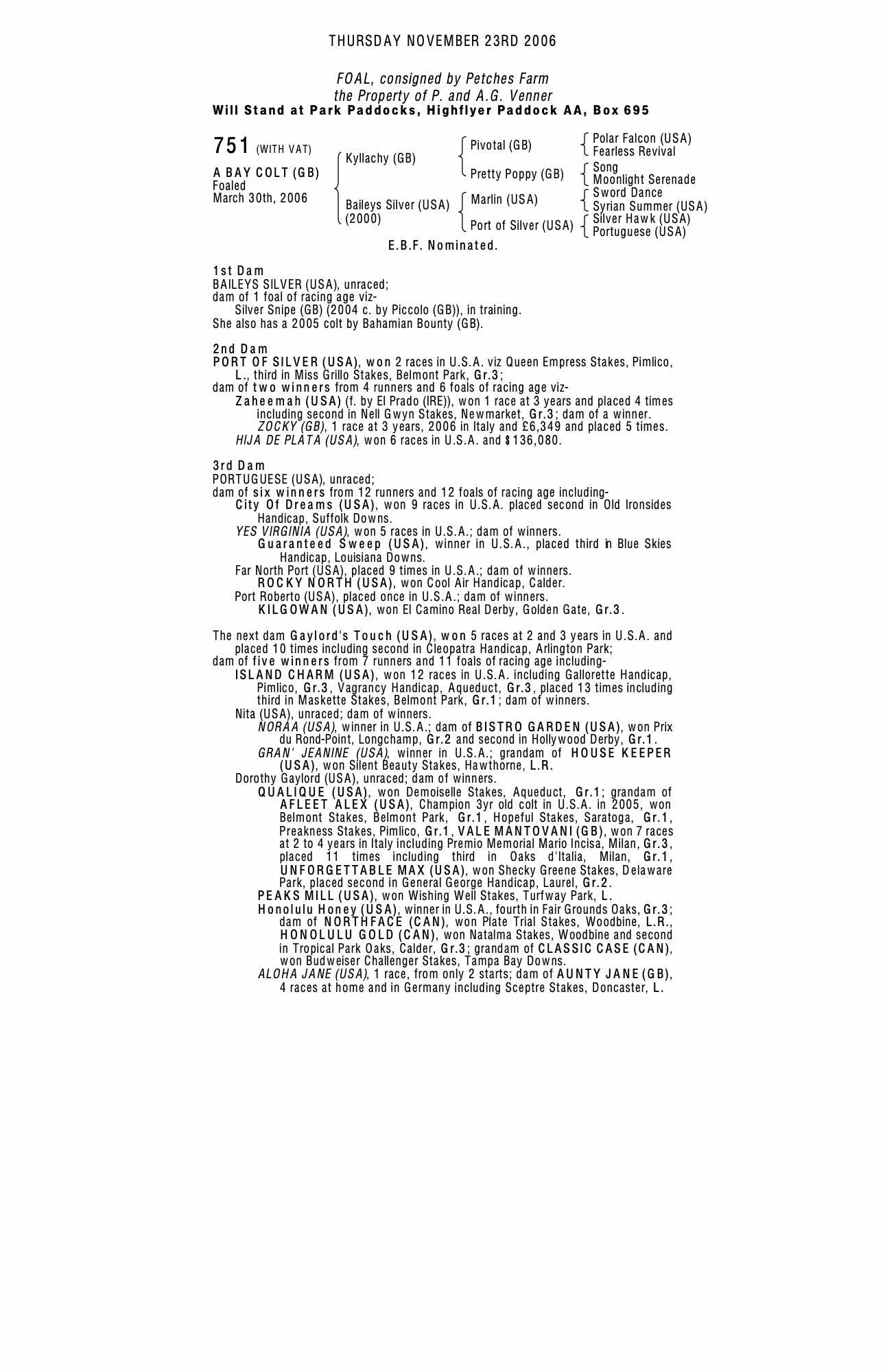 October Yearling Sale, Book 2 2007 lot 1205, Voute Sales Ltd. (Agent)=>C Gordon-Watson Bloodstock 80,000 gns