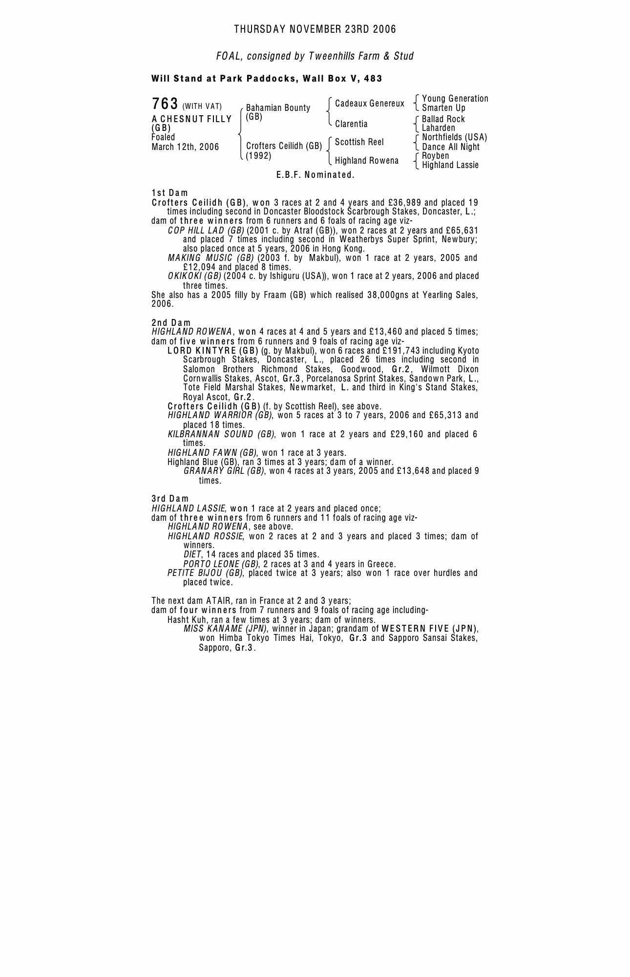 Consignor: Tweenhills Farm & Stud
