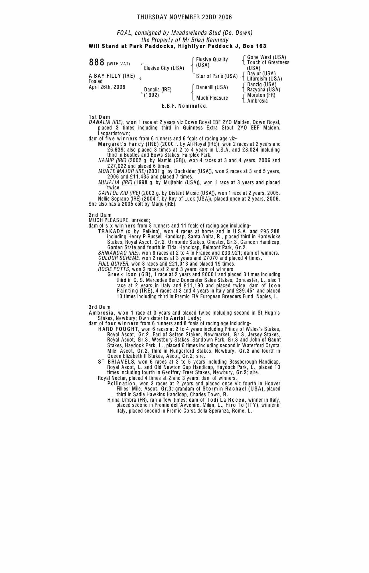 Consignor: Meadowlands Stud (Co. Down)