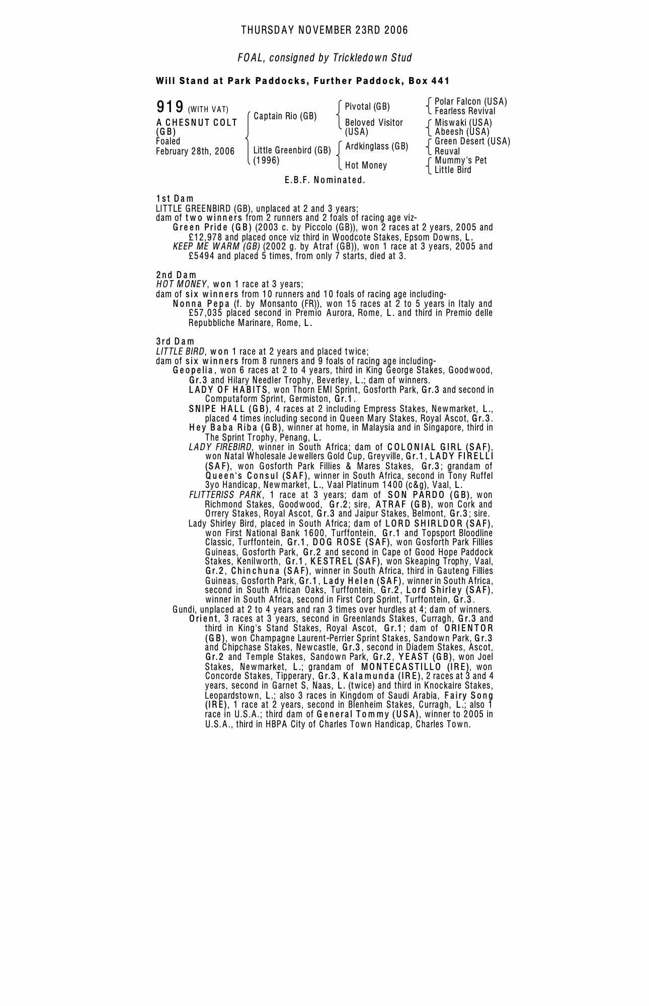 Autumn Horses in Training Sale 2005 lot 412 Green Pride (GB) (C. by Piccolo (GB)), East Everleigh Stables=>Stall Sarah 40,000 gns