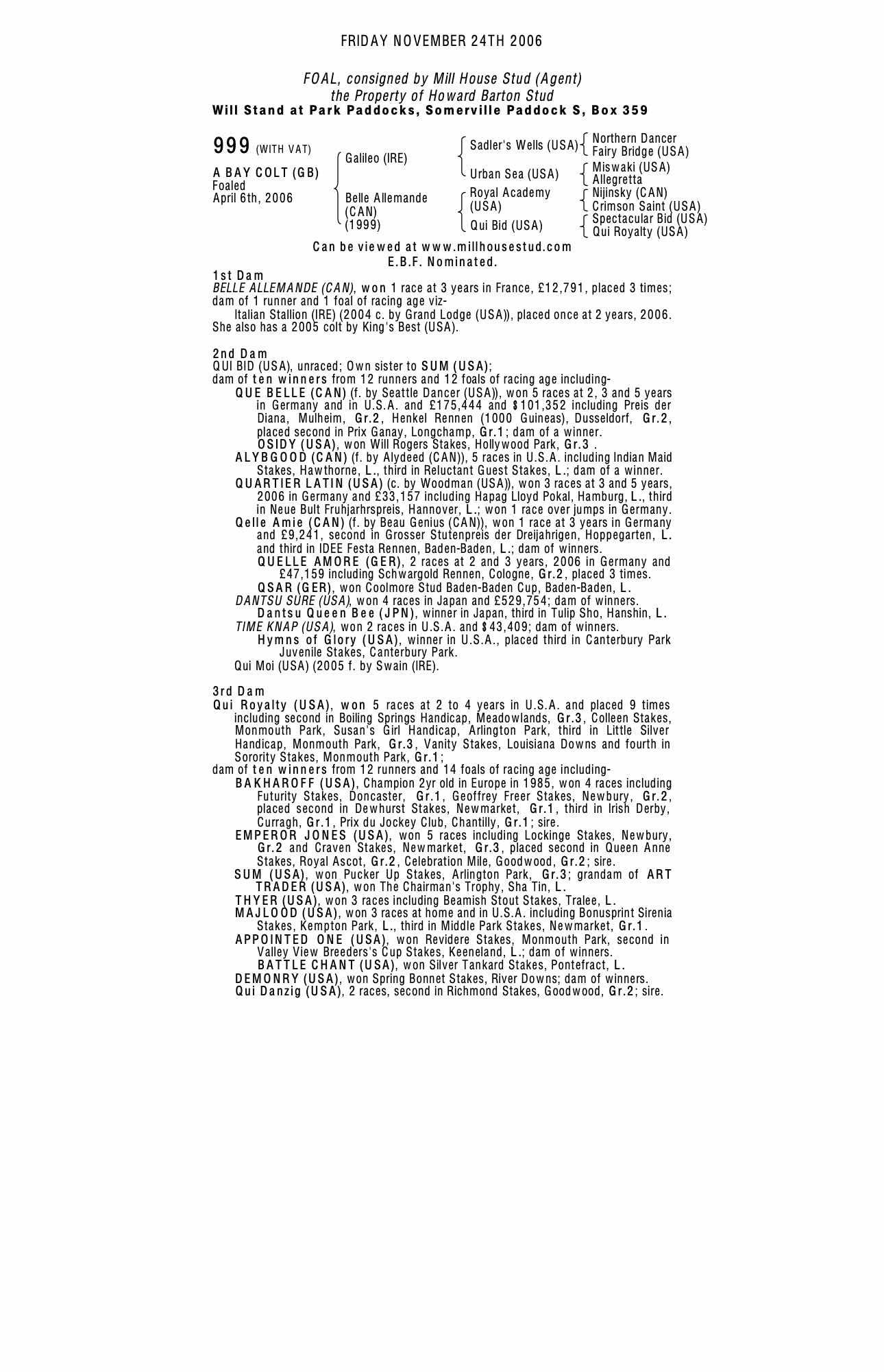 October Yearling Sale, Book 1 2007 lot 587, Trickledown Stud=>J Magnier 310,000 gns
