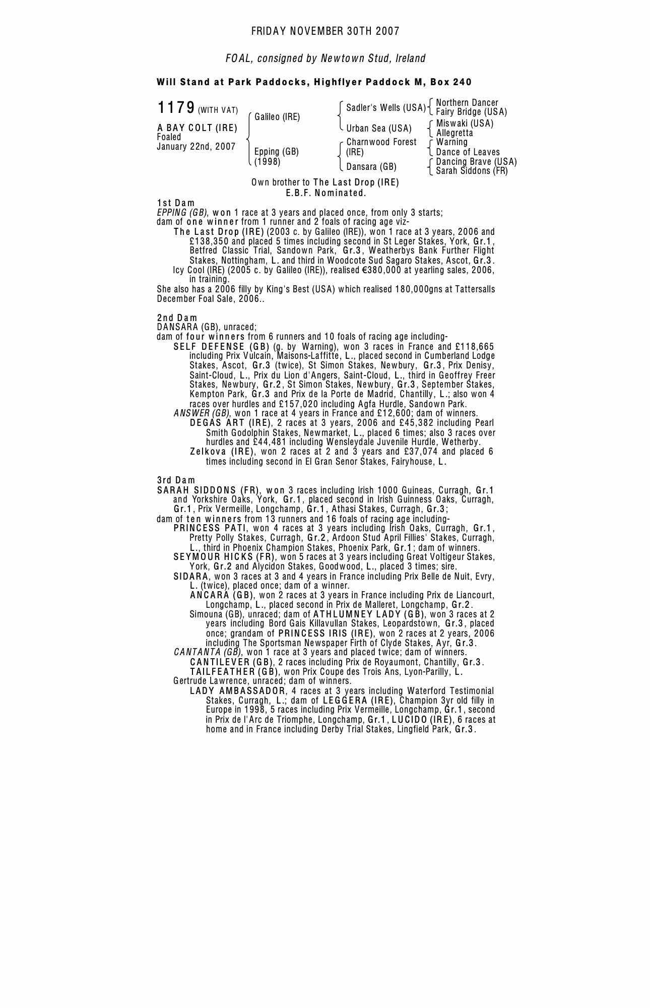 December Foal Sale 2006 lot 997 F. by King's Best (USA) 2006, Newtown Stud, Ireland=>John Ferguson Bloodstock 180,000 gns