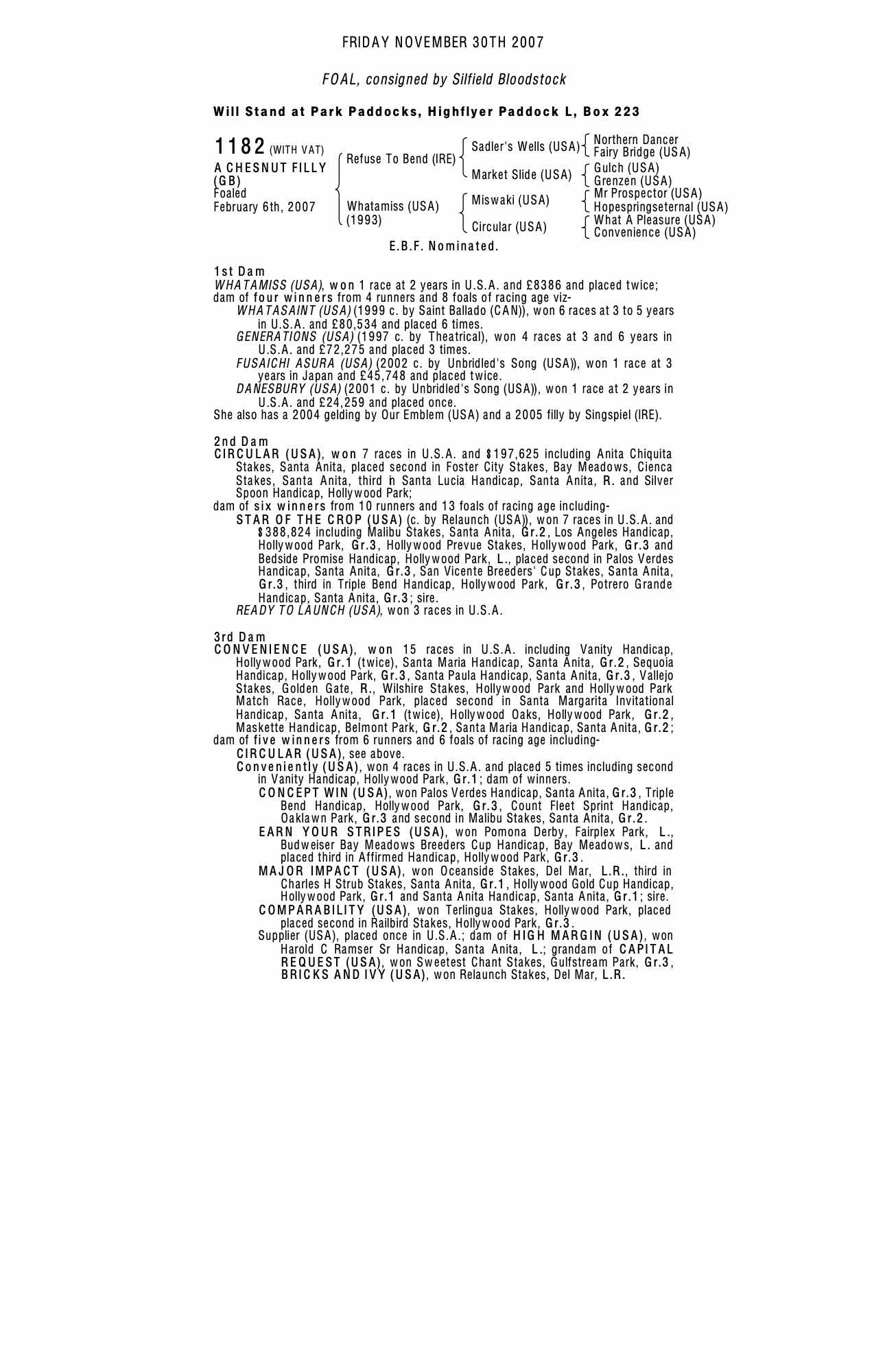 October Yearling Sale, Book 2 2009 lot 897 F. by Librettist (USA) 2008, John Troy, Agent=>Rabbah Bloodstock 55,000 gns