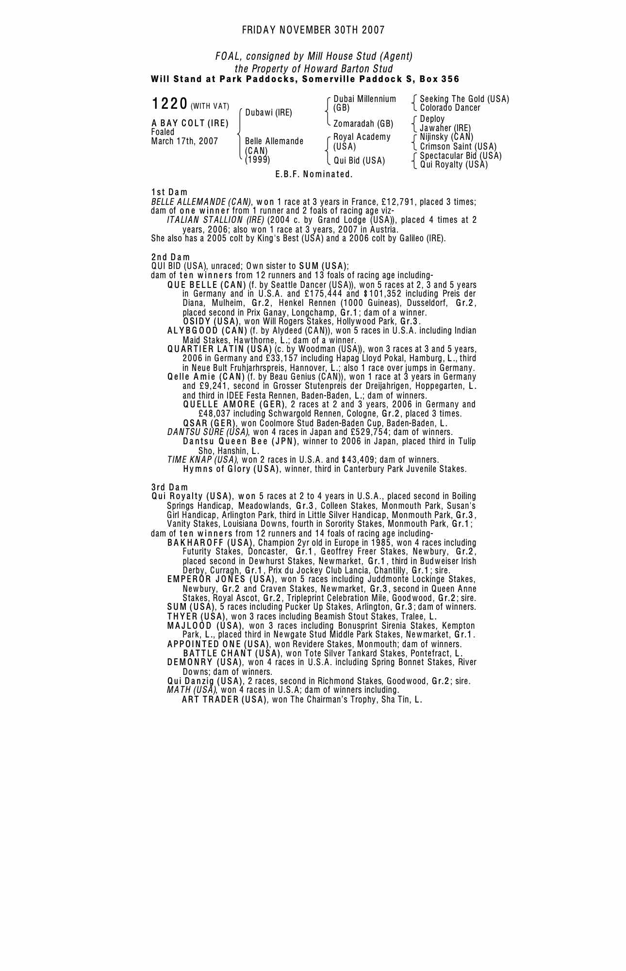 Consignor: Mill House Stud (Agent)