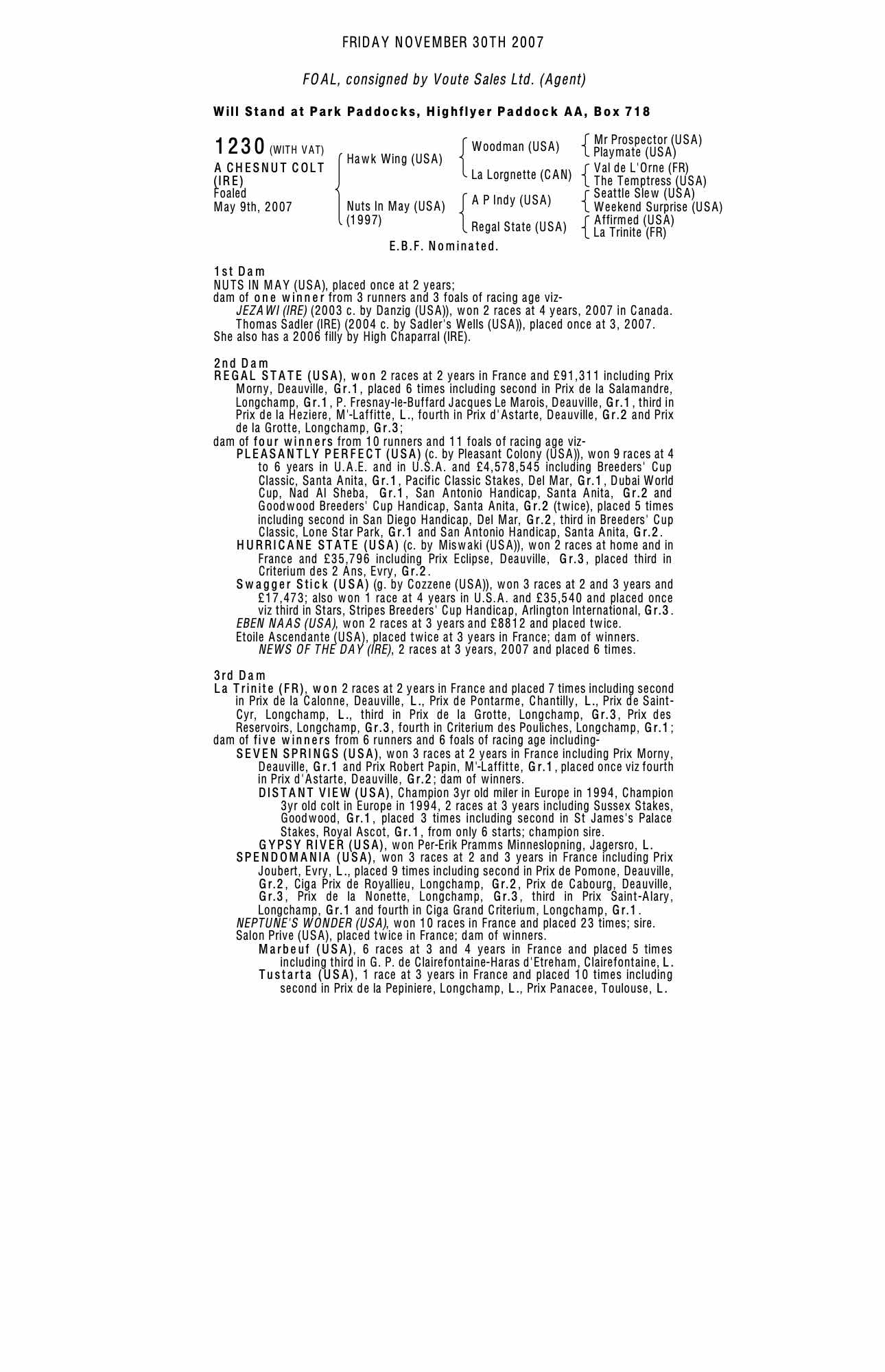 Consignor: Voute Sales Ltd. (Agent)