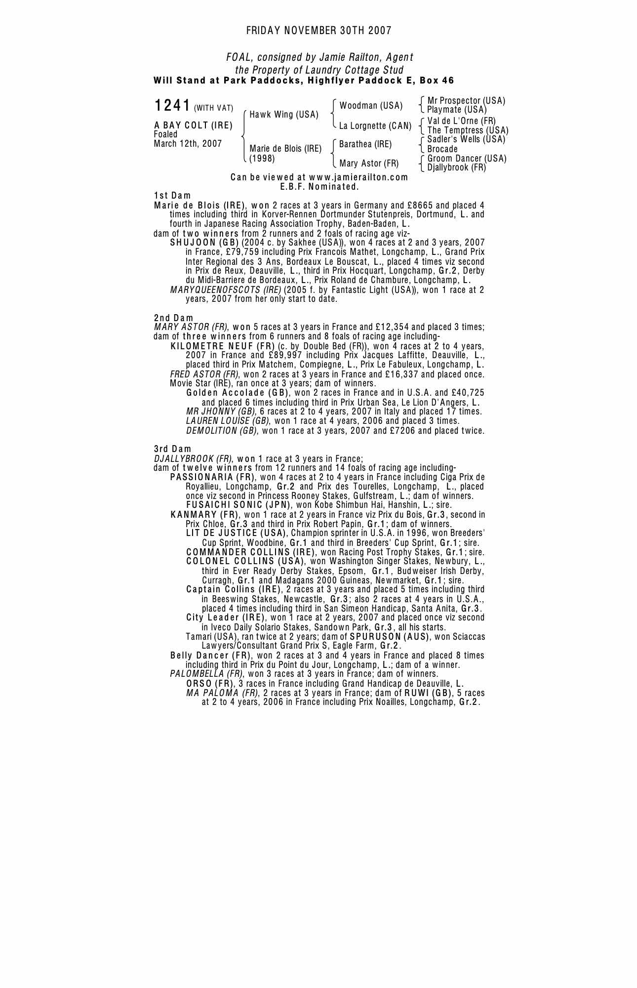 October Yearling Sale, Book 2 2009 lot 1340 F. by Peintre Celebre (USA) 2008, Jamie Railton, Agent=>S Dow 38,000 gns