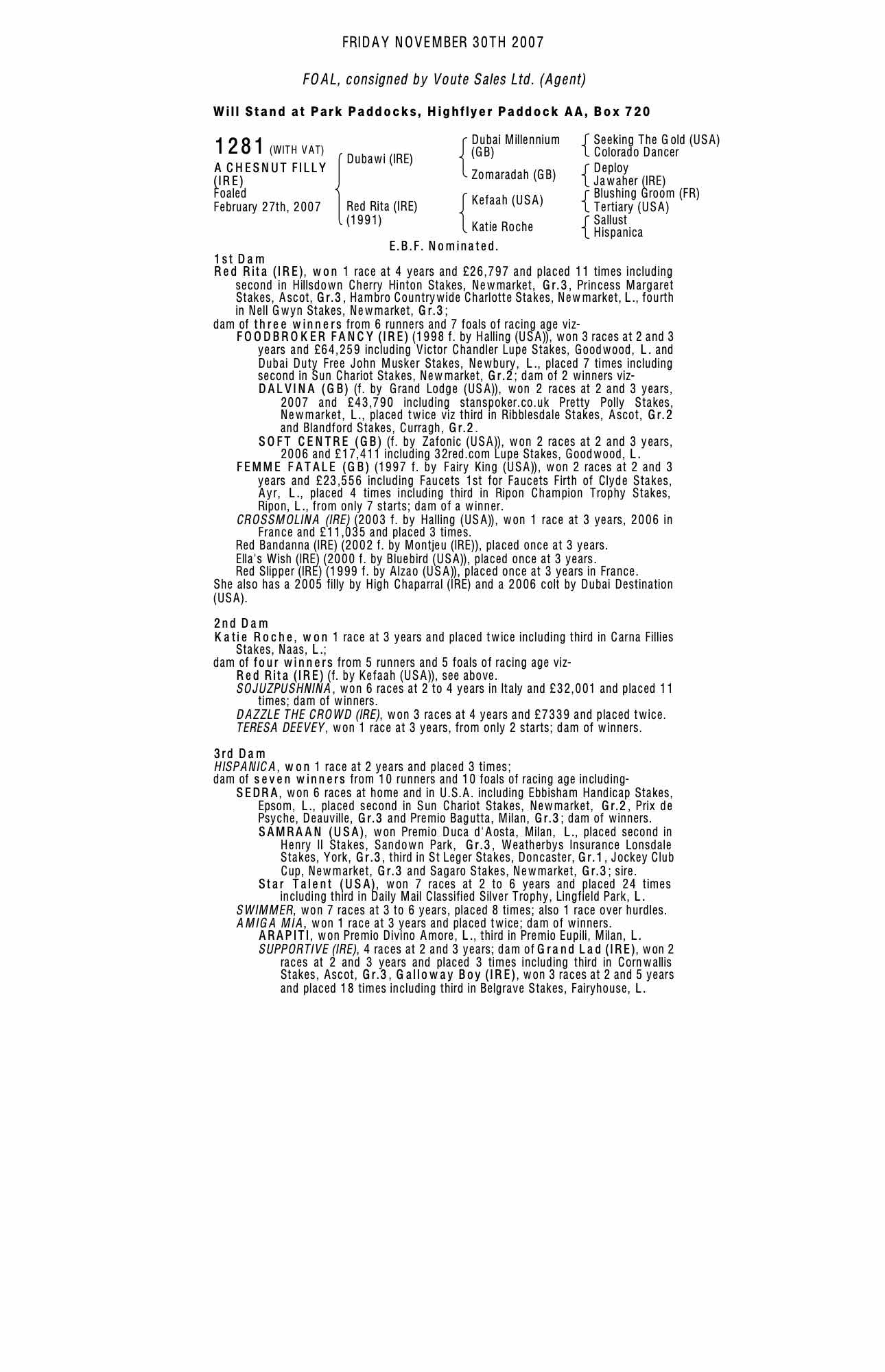 October Yearling Sale, Book 1 2006 lot 427 F. by High Chaparral (IRE) 2005, Voute Sales Ltd. (Agent)=>Lot Not Sold 30,000 gns