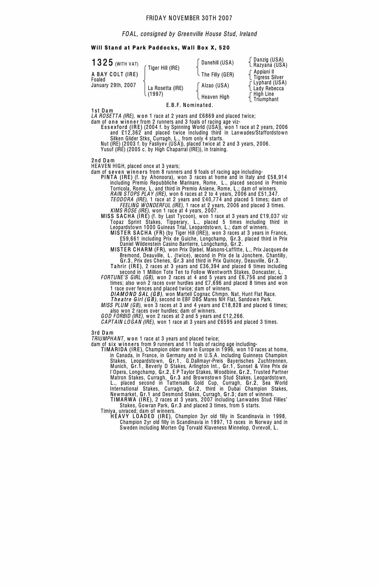 December Foal Sale 2004 lot 997 F. by Spinning World (USA) 2004, Greenville House Stud, Ireland=>Curragh Bloodstock Agency 40,000 gns