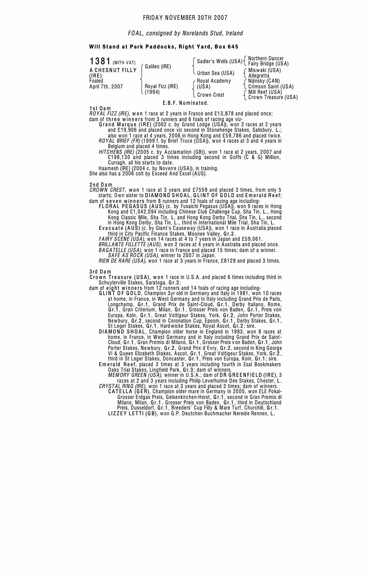 October Yearling Sale, Book 1 2005 lot 552 C. by Noverre (USA) 2004, Lynn Lodge Stud, Ireland=>Shadwell Estate Company 120,000 gns