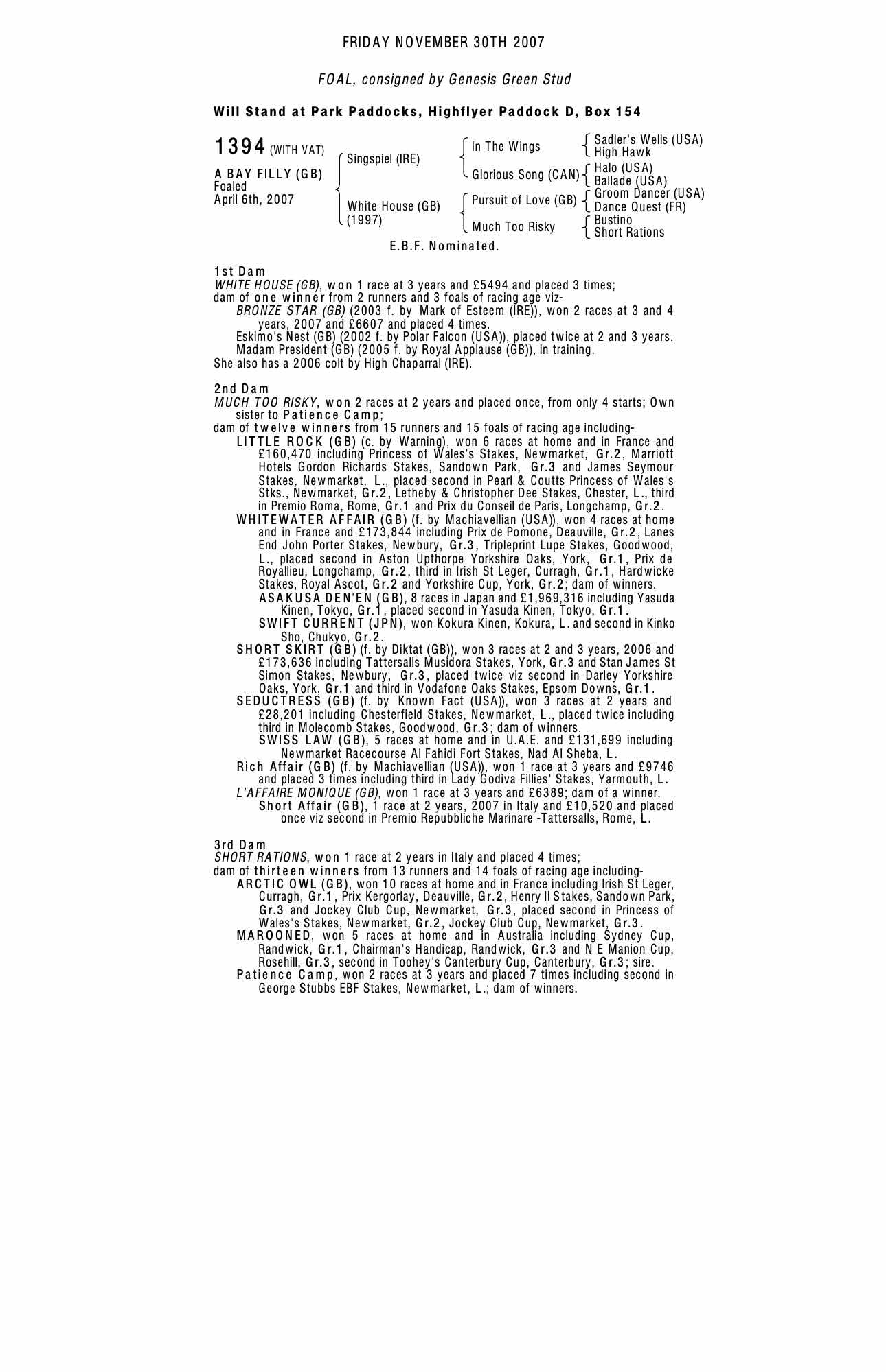 October Yearling Sale, Book 1 2009 lot 174 F. by Refuse To Bend (IRE) 2008, Genesis Green Stud=>Lot Not Sold 9,500 gns