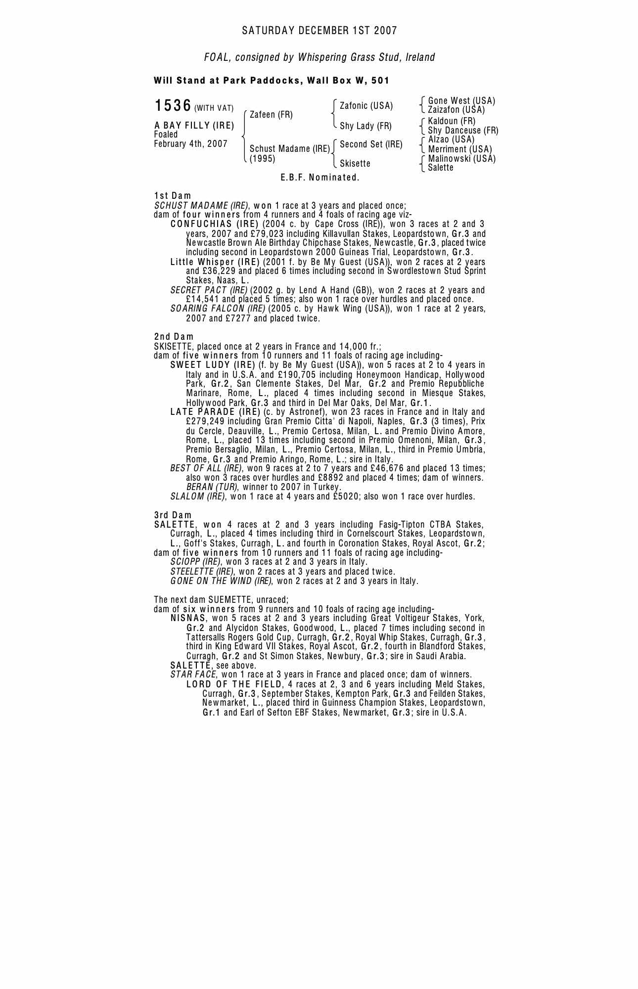 December Foal Sale 2001 lot 936 F. by Be My Guest (USA) , Whispering Grass Stud, Ireland=>Lot Not Sold 14,000 gns