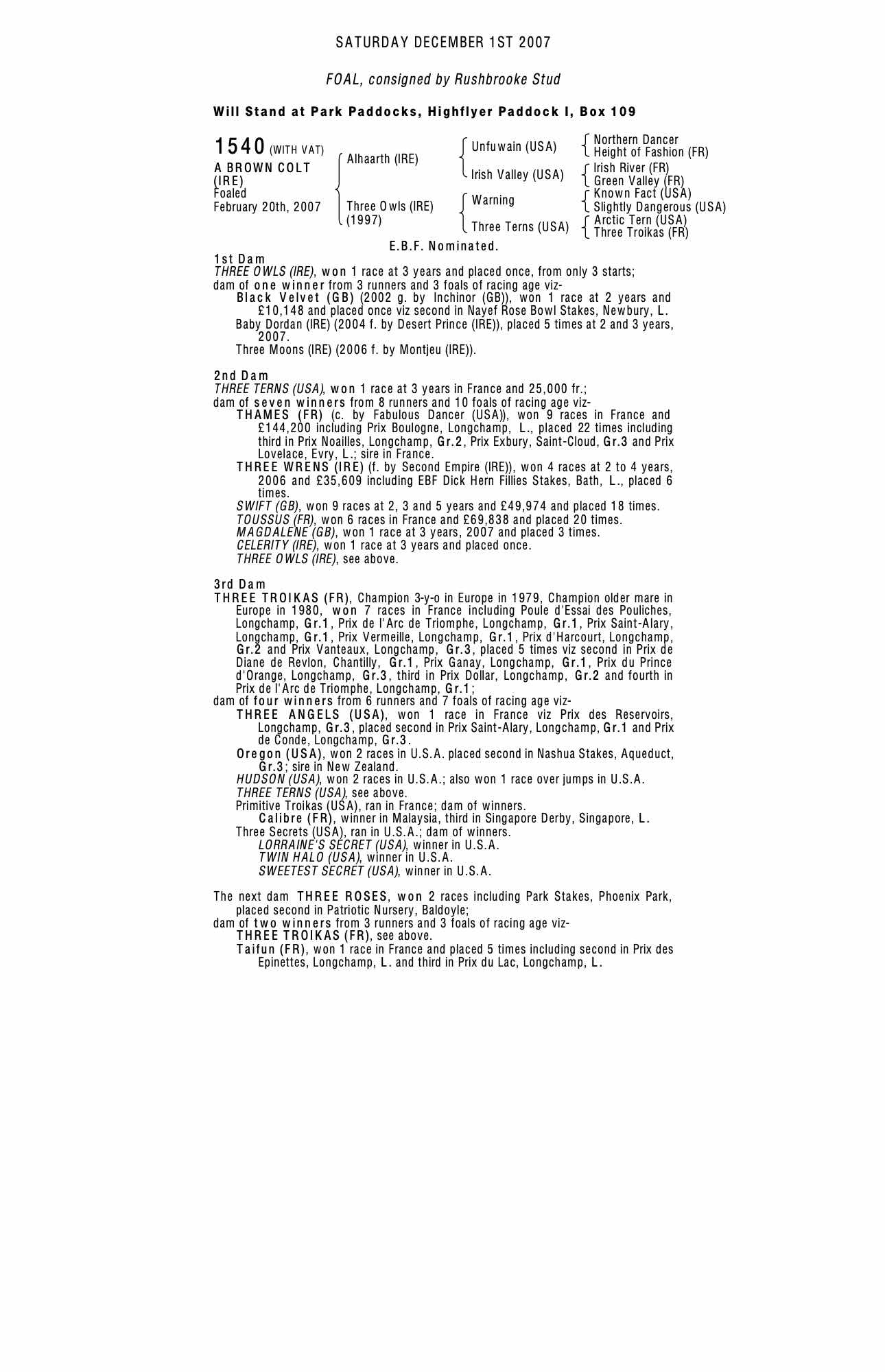 Consignor: Rushbrooke Stud