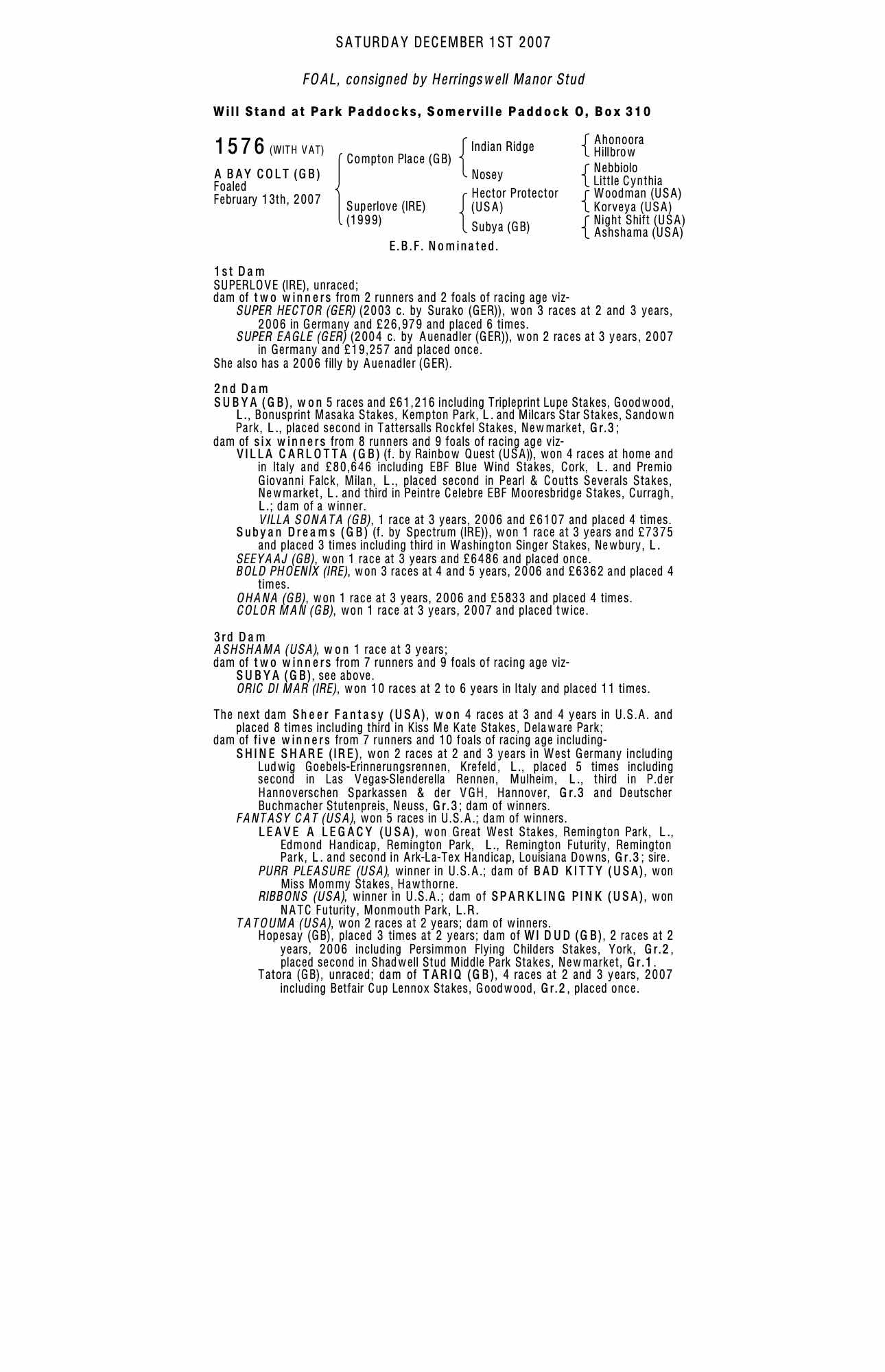 October Yearling Sale, Book 4 2007 lot 2123 F. by Auenadler (GER) 2006, John Osborne, Agent=>TG Price 800 gns