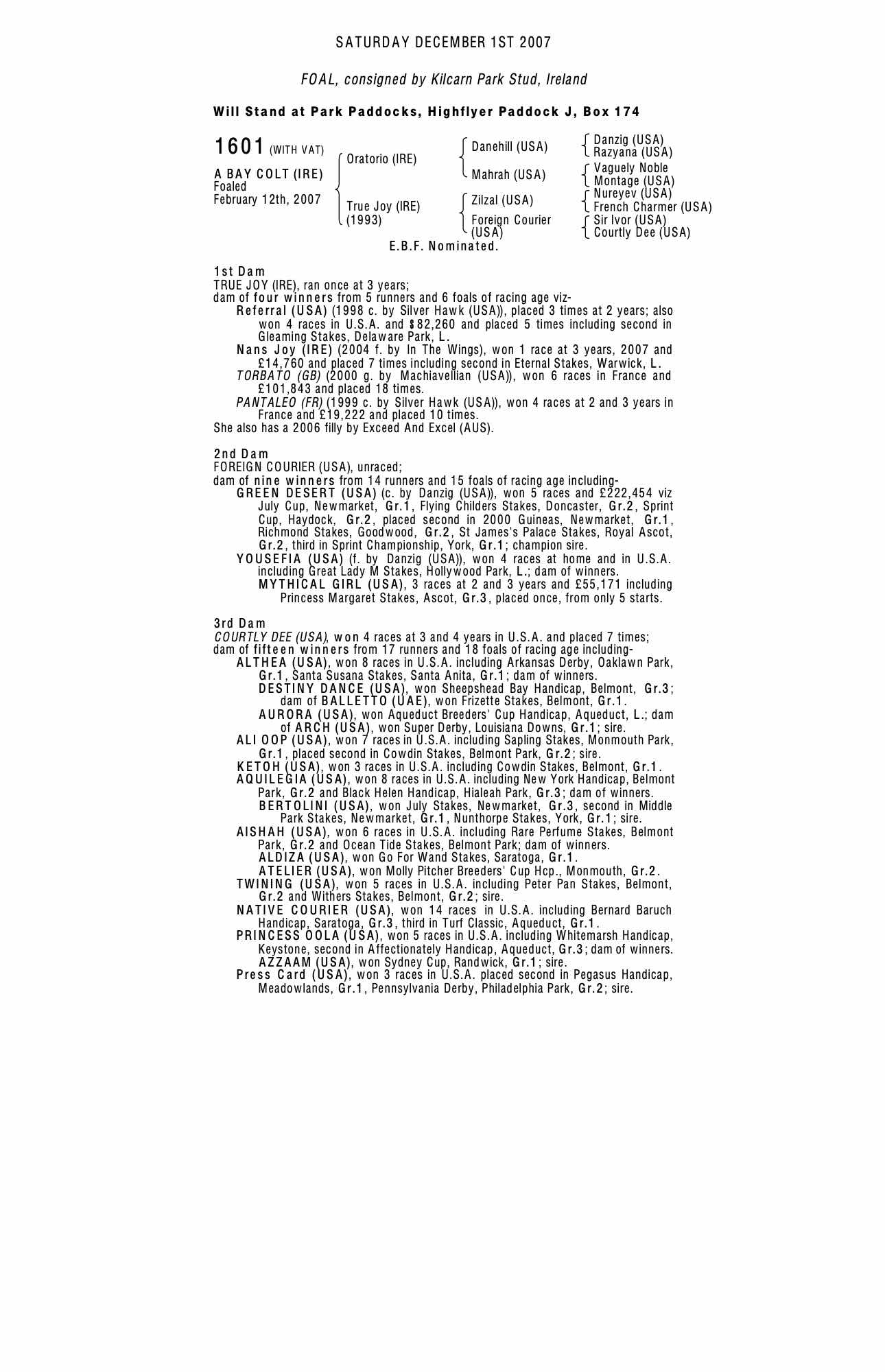 October Yearling Sale, Book 1 2003 lot 399 F. by Rainbow Quest (USA) 2002, Kilcarn Park, Ireland=>Lot Not Sold 100,000 gns