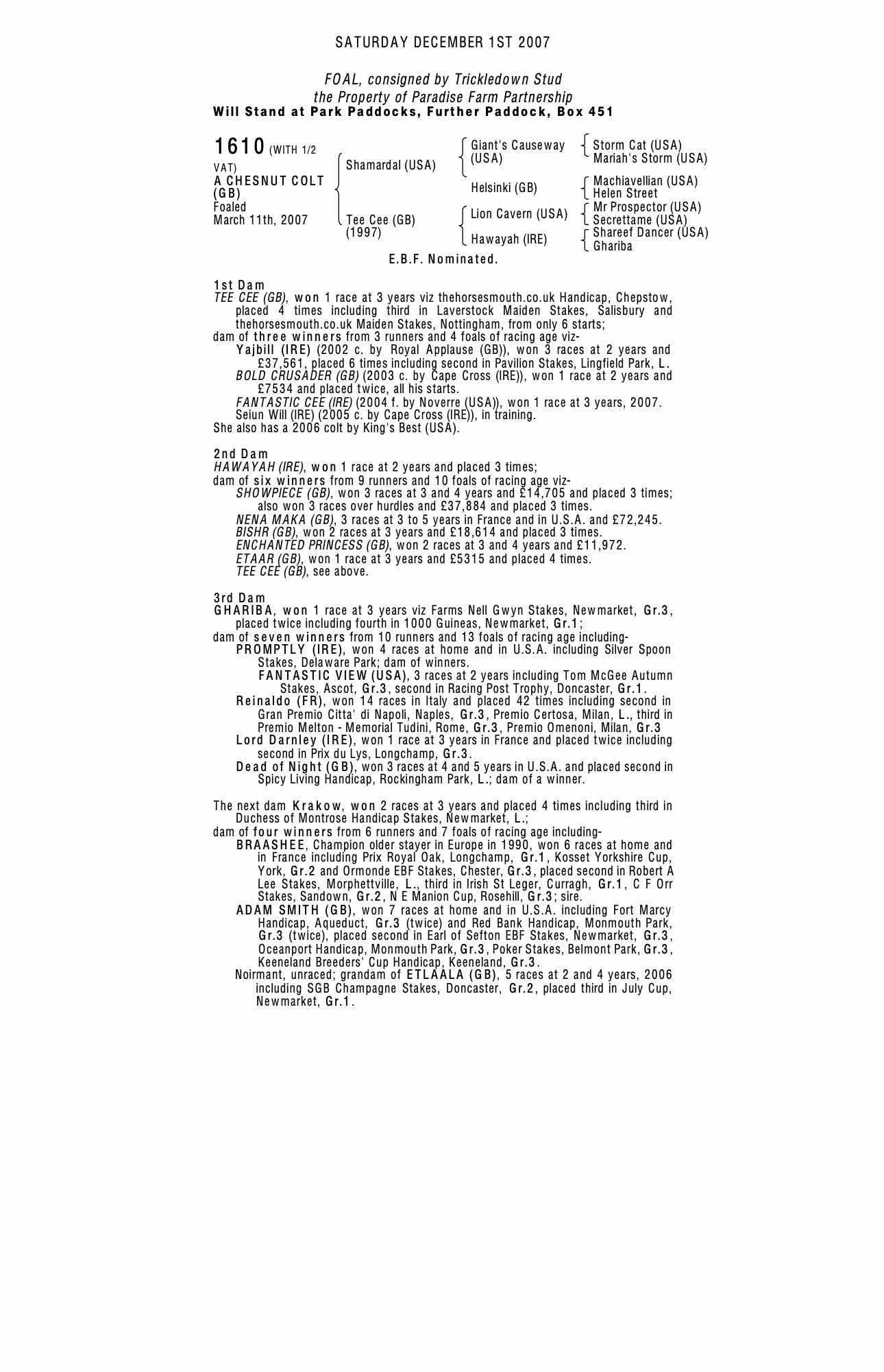 Consignor: Trickledown Stud