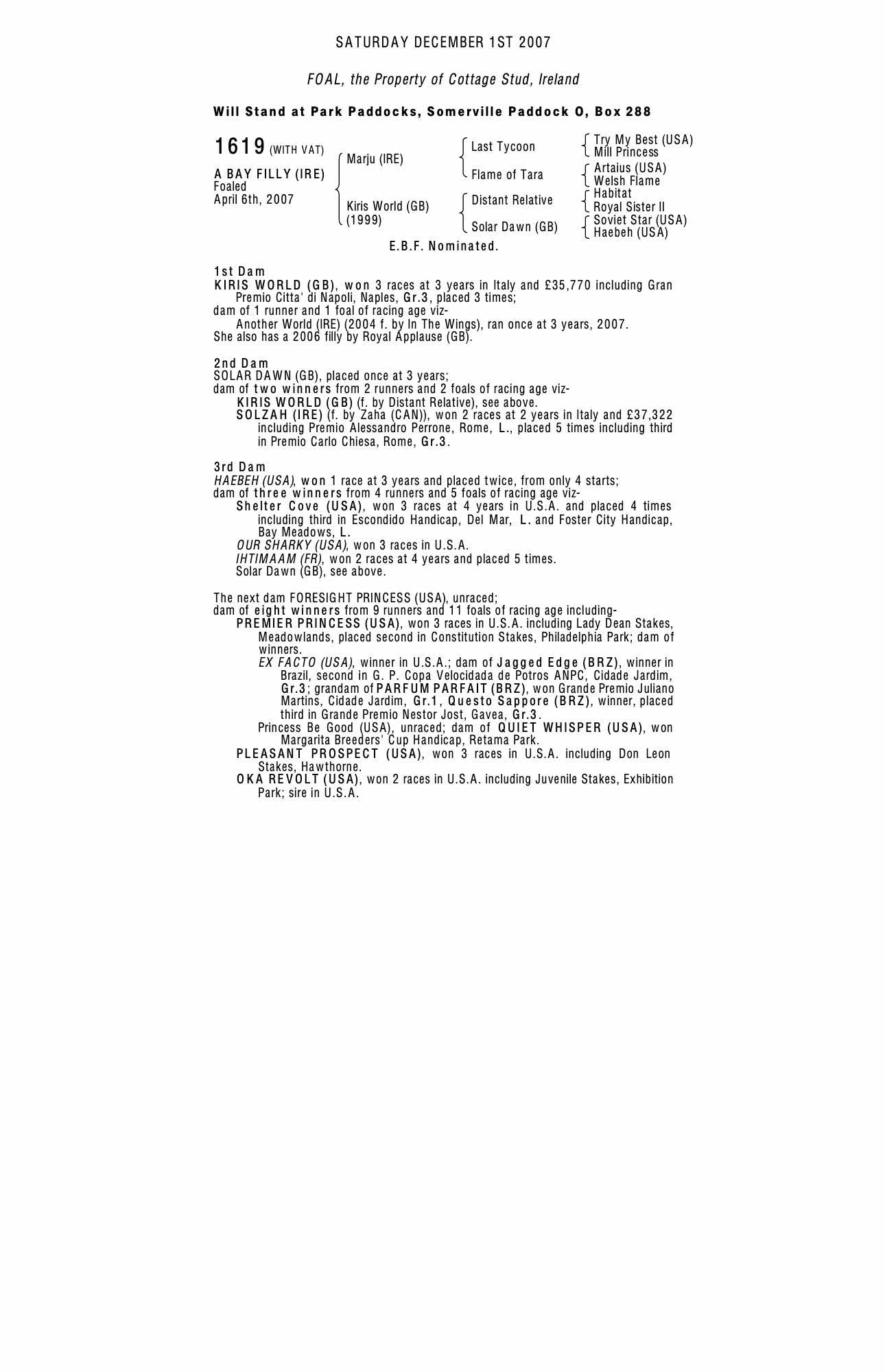 Consignor: Cottage Stud, Ireland