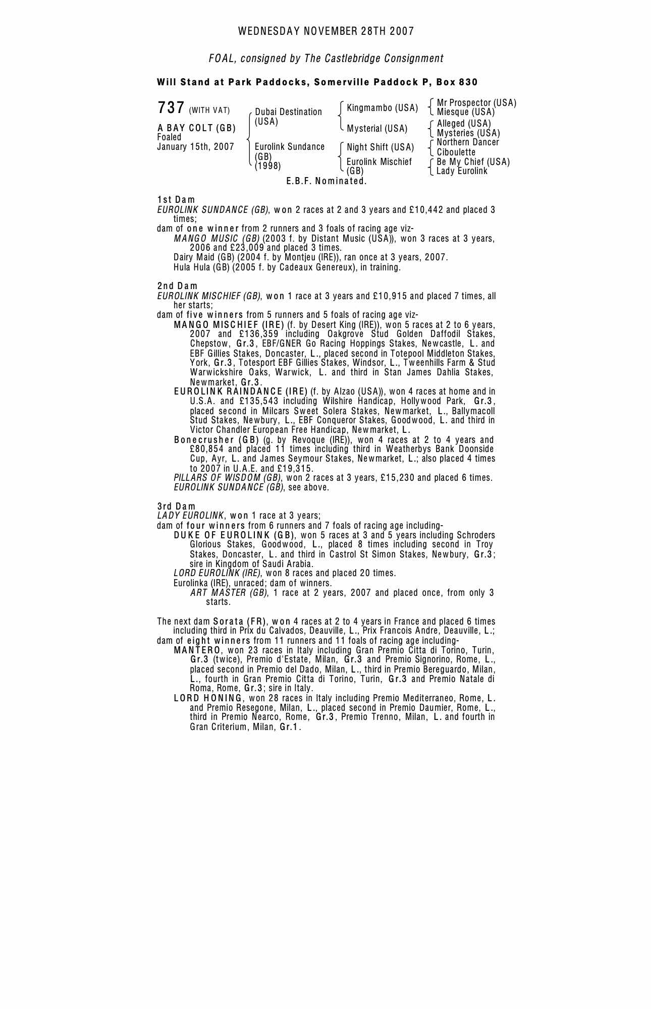 December Mare Sale 2008 lot 1807 Mango Music (GB) (M. by Distant Music (USA)), a Partnership=>Lot Not Sold 17,000 gns