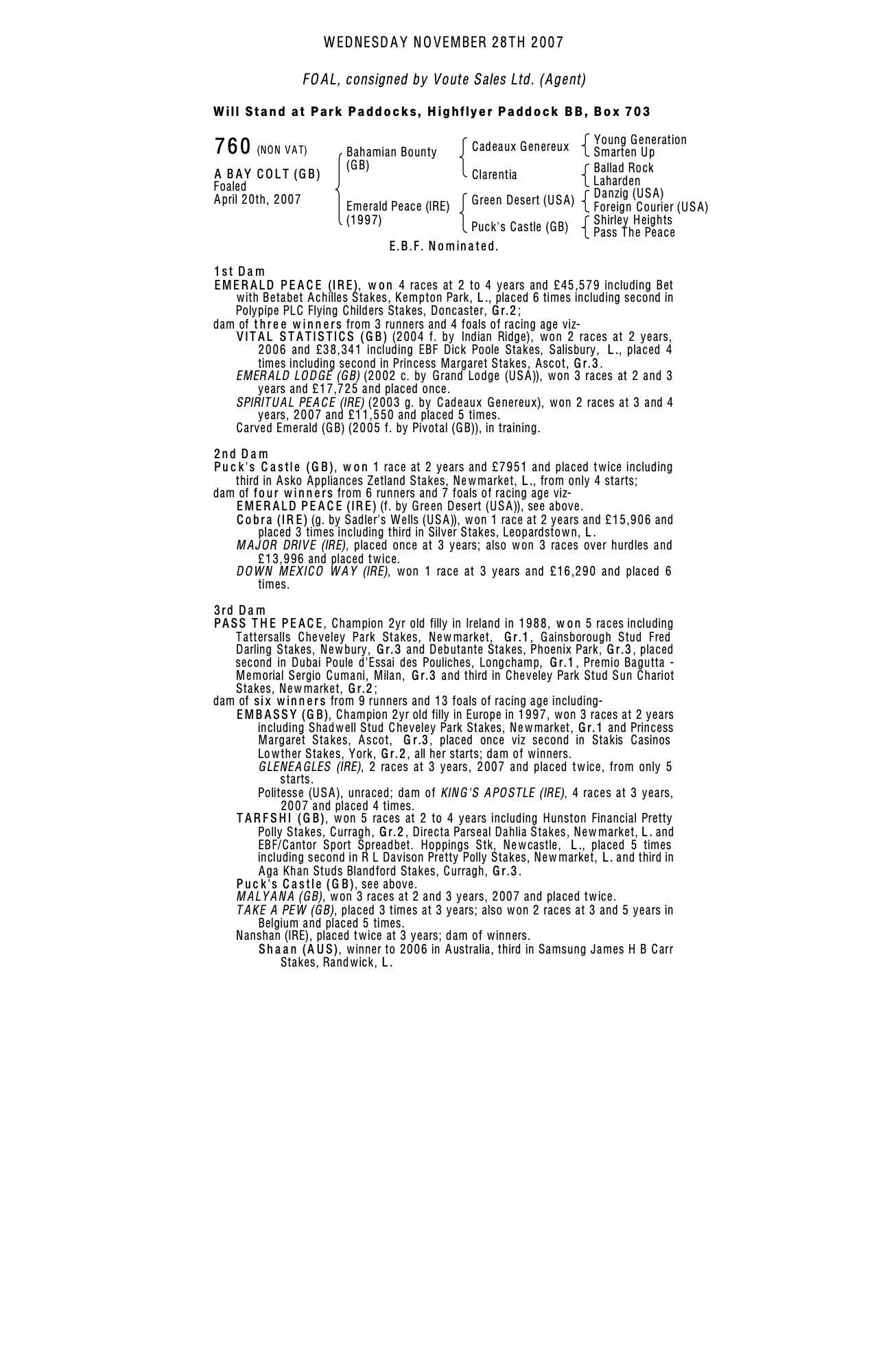 October Yearling Sale, Book 3 2008 lot 1691, Voute Sales Ltd. (Agent)=>Tony Newcombe 1,000 gns