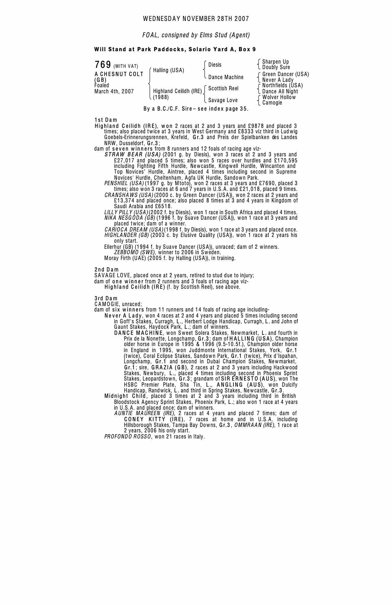 October Yearling Sale, Book 2 2006 lot 732 F. 2005, Elms Stud, Agent=>Vendor 38,000 gns