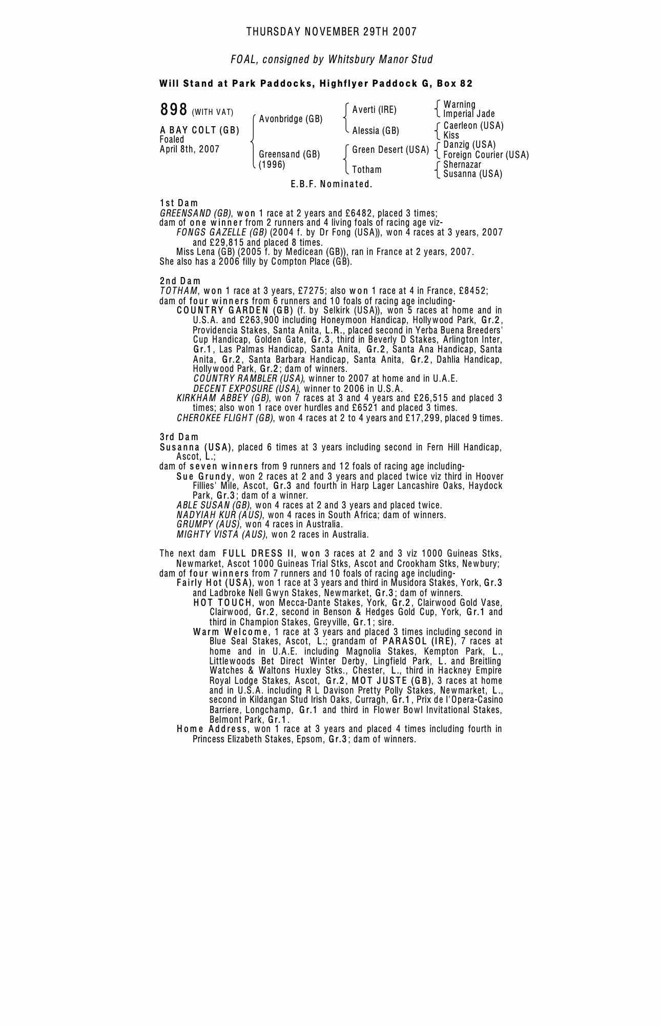 Consignor: Whitsbury Manor Stud