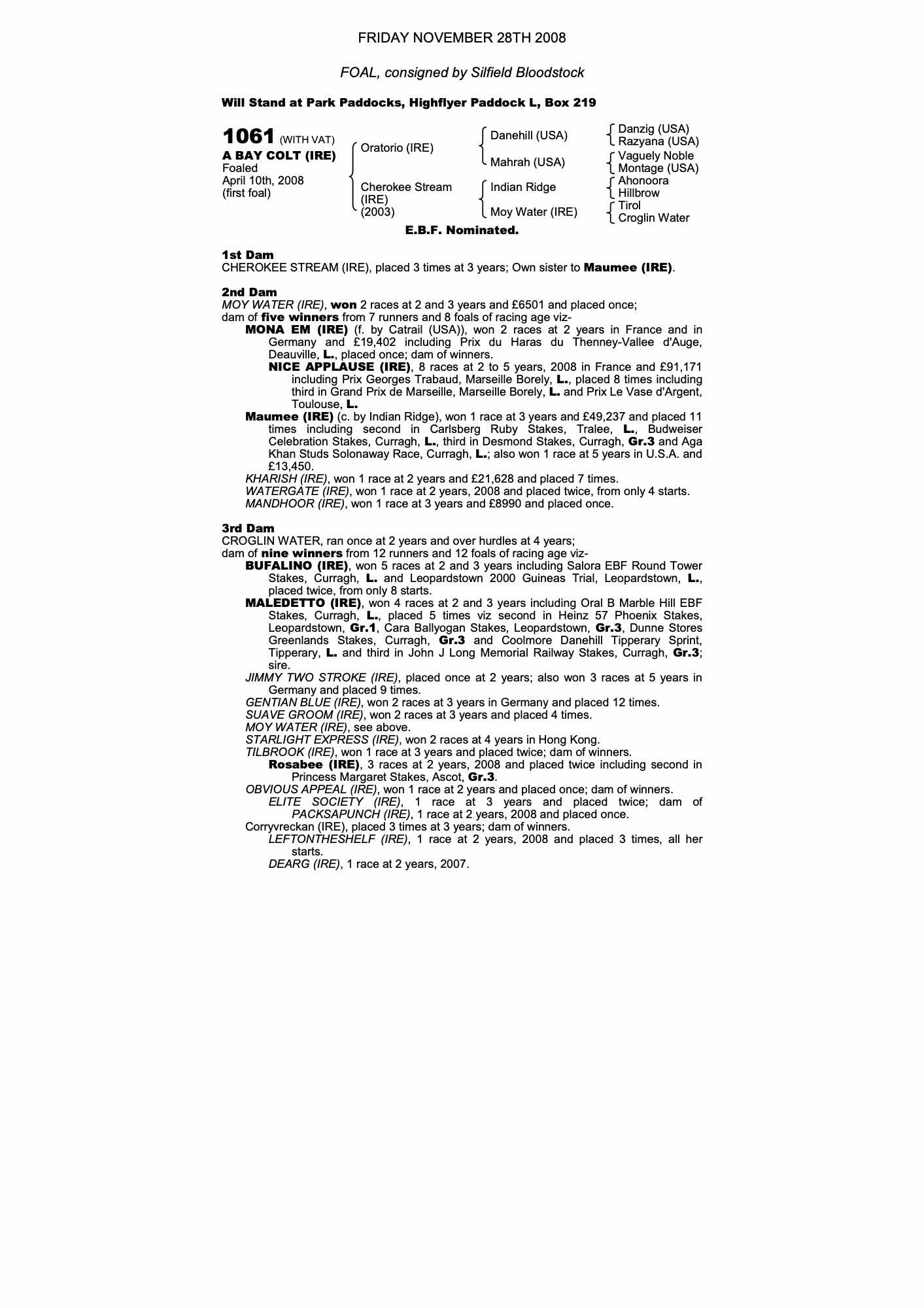 October Yearling Sale, Book 2 2009 lot 1032 C. 2008, Millfields Stables=>E McMahon 25,000 gns