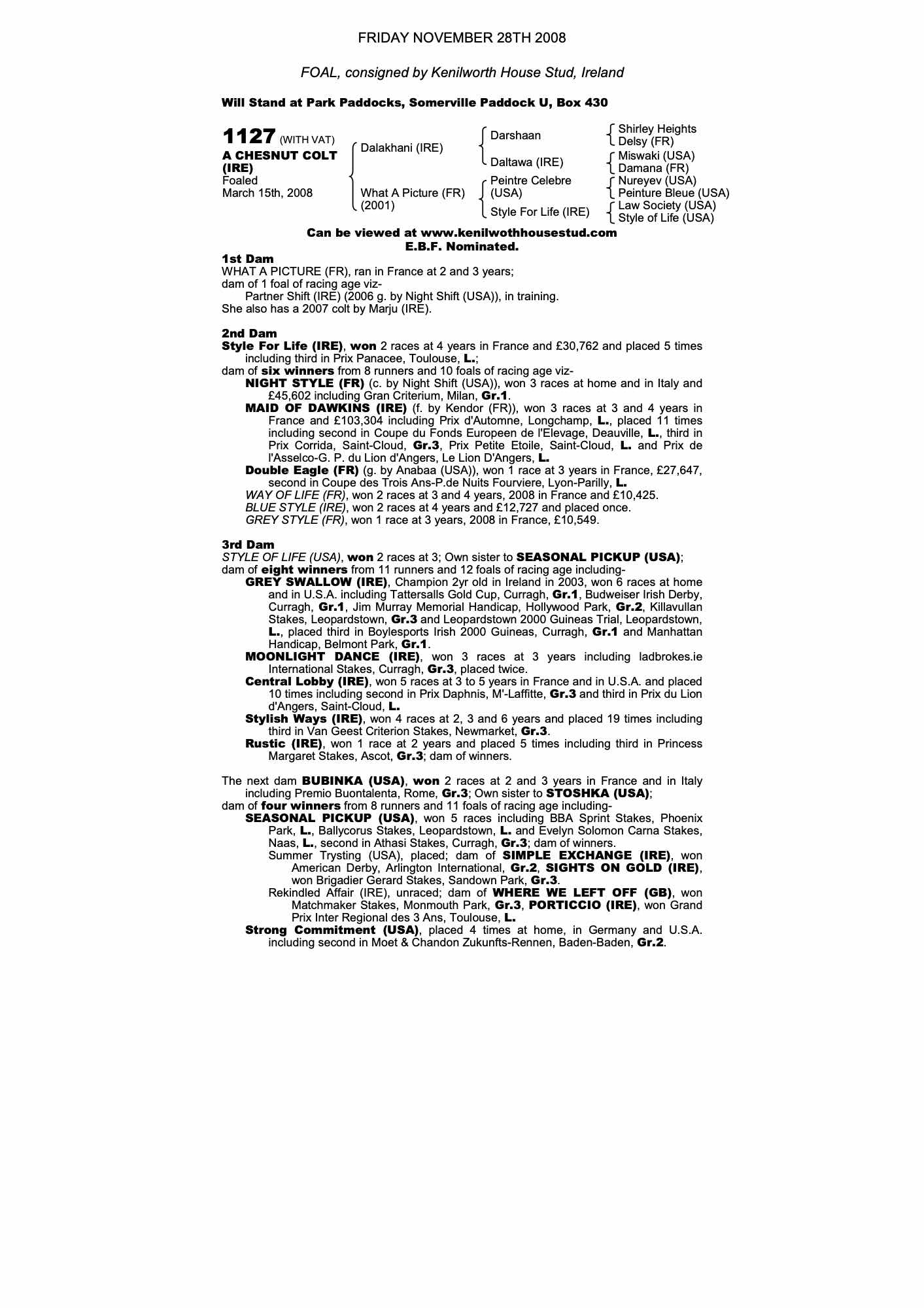 December Foal Sale 2006 lot 1111 C. by Night Shift (USA) 2006, Kildaragh Stud, Ireland (Agent)=>Agence FIPS 38,000 gns