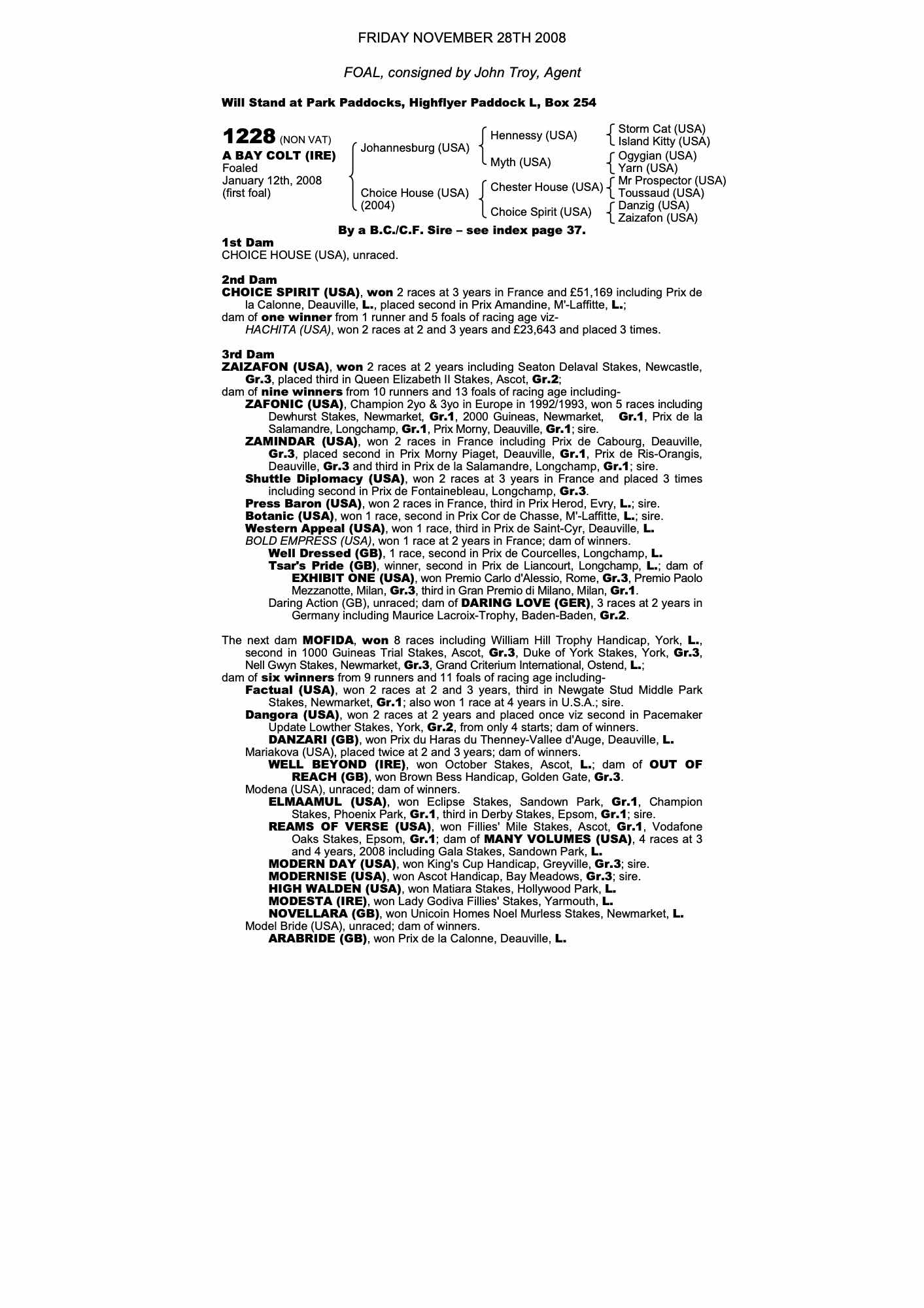 October Yearling Sale, Book 2 2009 lot 1035 C. 2008, Northmore Stud=>McKeever St Lawrence 67,000 gns