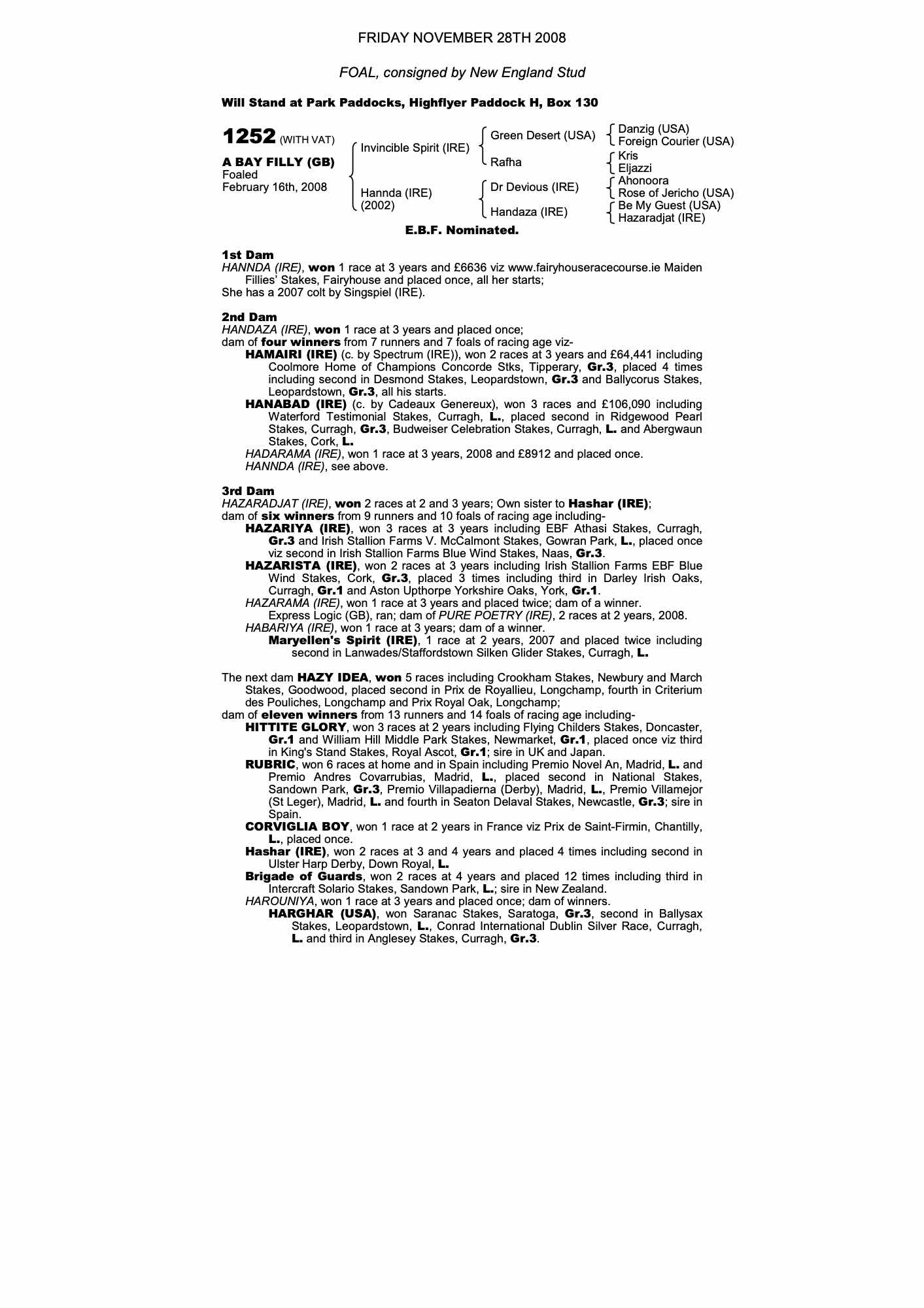 Invincible Spirit (IRE) / Hannda (IRE) B.F.