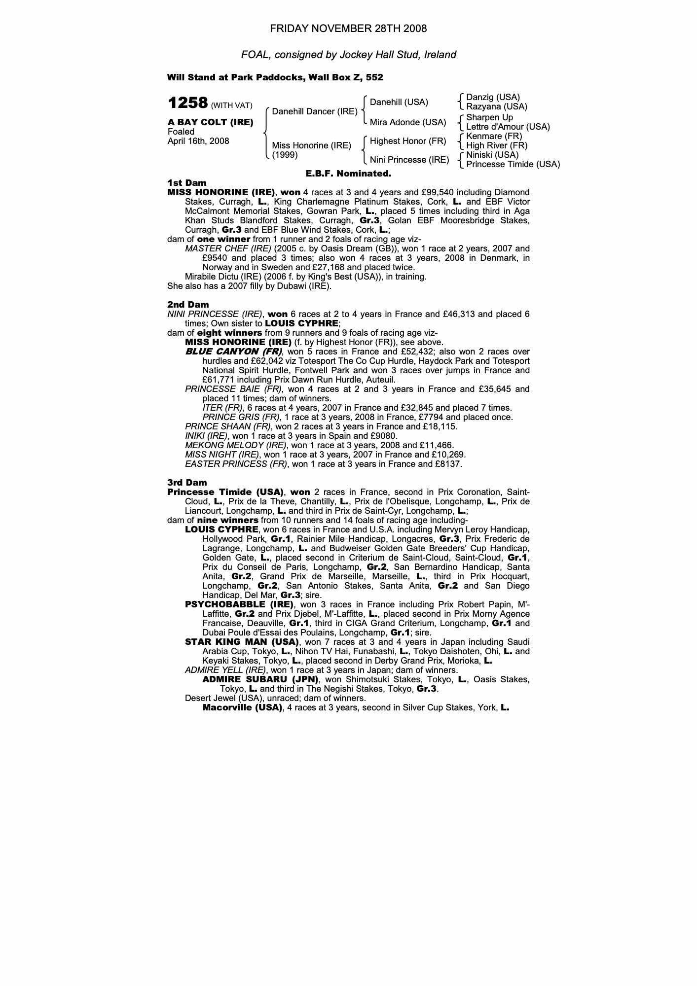 Consignor: Jockey Hall Stud, Ireland