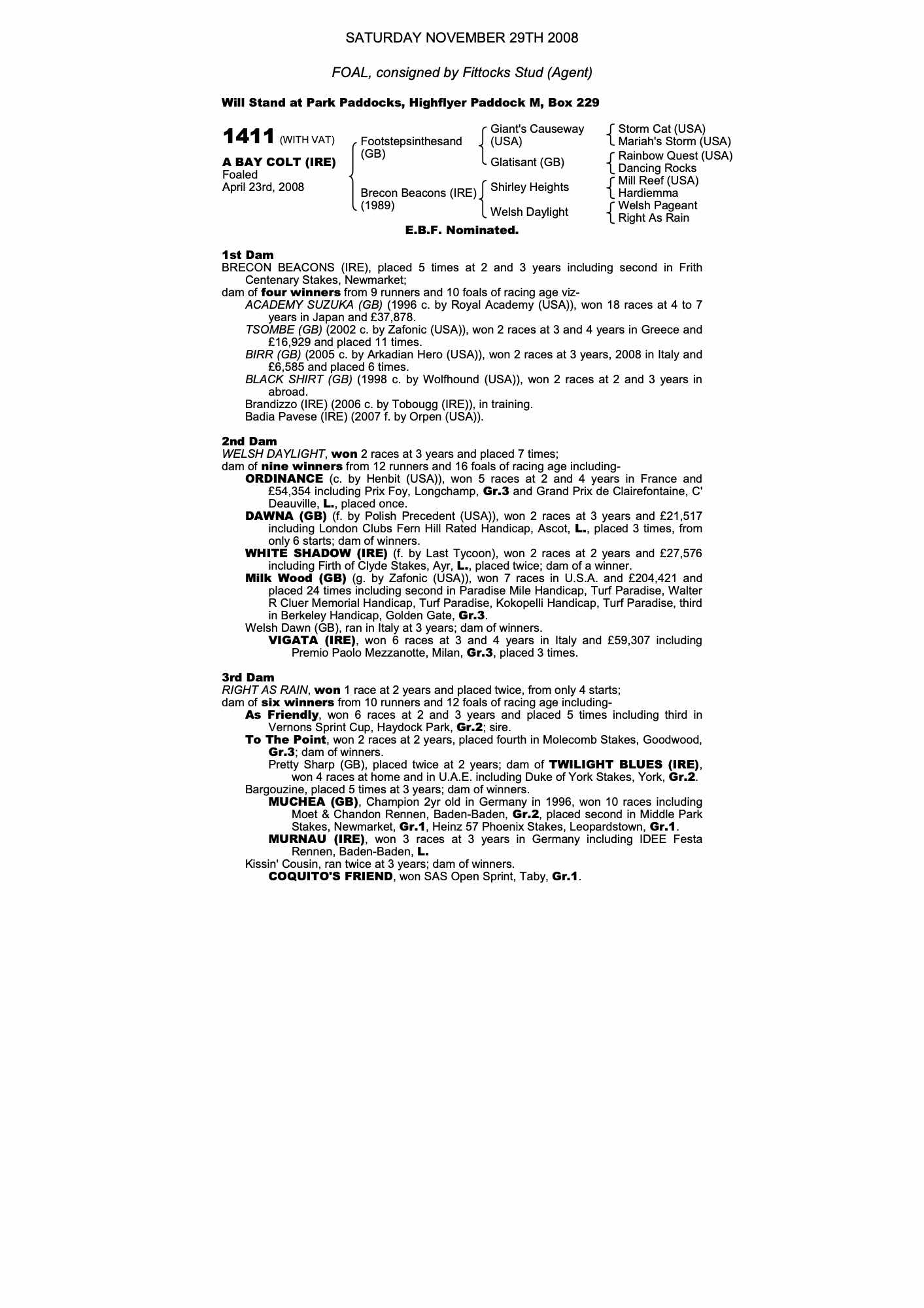 October Yearling Sale, Book 1 2003 lot 970 C. by Zafonic (USA) 2002, Whatton Manor Stud=>E Duggan Blue Bloodstock 16,500 gns