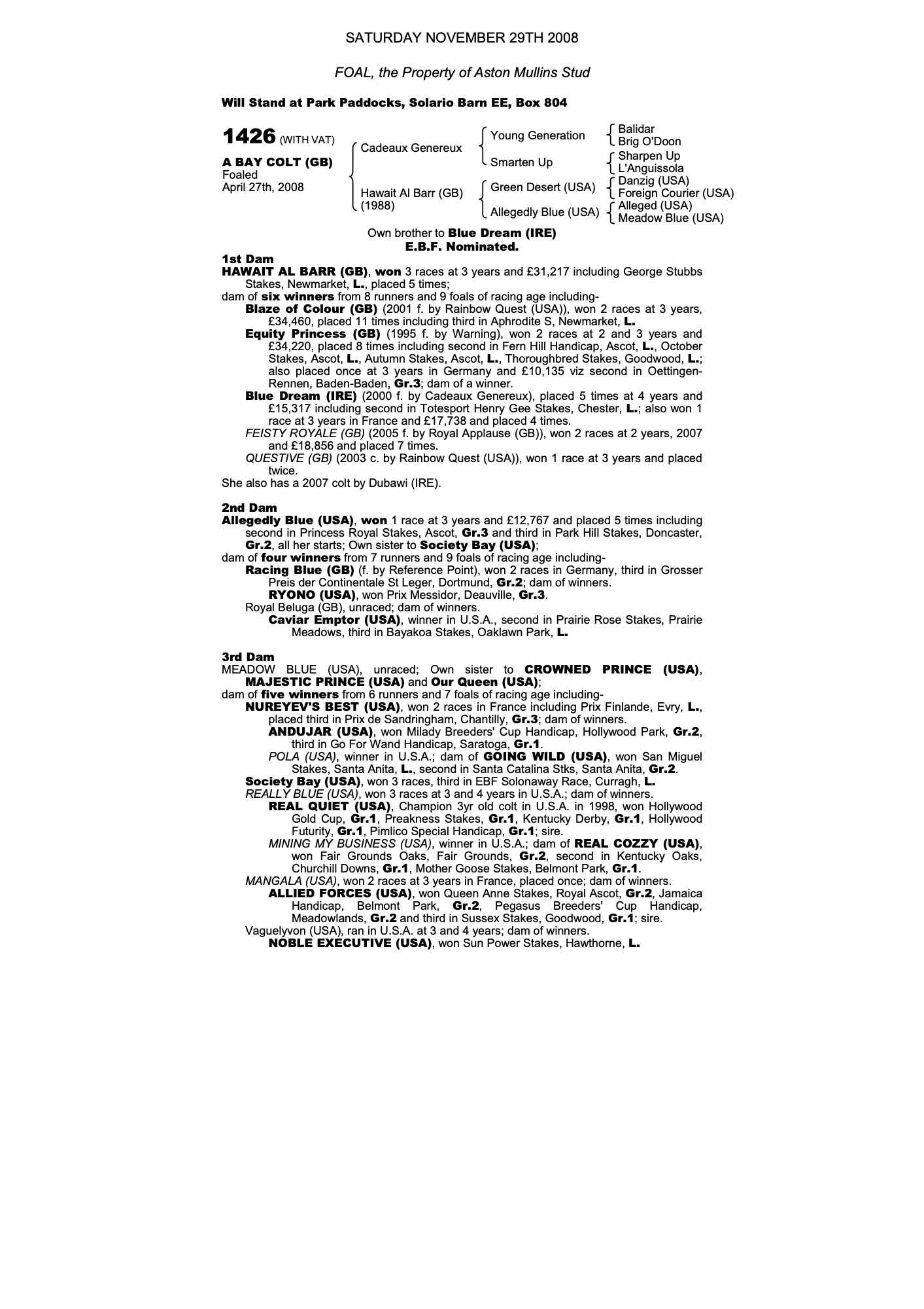 October Yearling Sale, Book 2 2009 lot 1222 C. 2008, Ballymoney Park Stud, Ireland=>C Gordon-Watson Bloodstock 52,000 gns