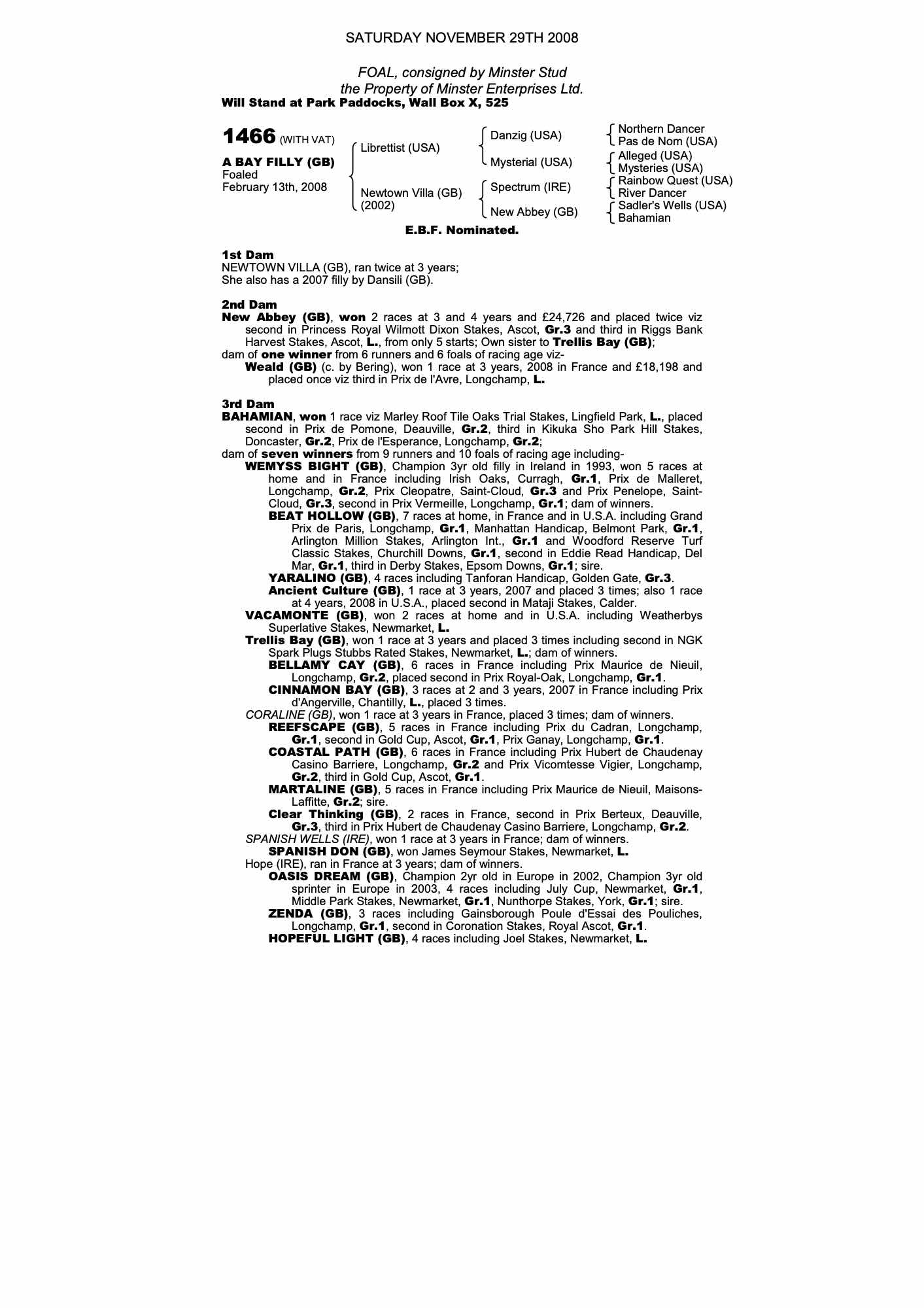 October Yearling Sale, Book 2 2009 lot 1401 F. 2008, Minster Stud=>Lot Not Sold