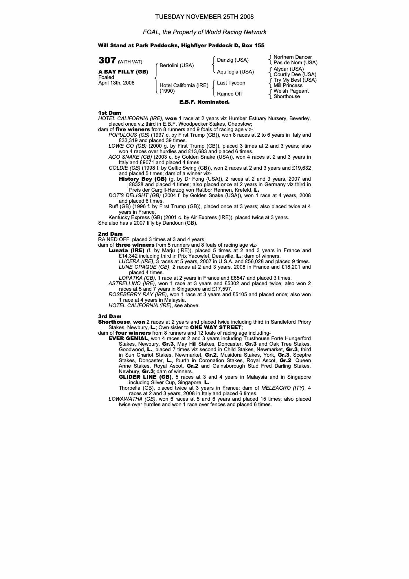 October Yearling Sale, Book 3 2008 lot 1934 F. by Dandoun (GB) 2007, Northmore Stud=>WM Brisbourne 1,000 gns