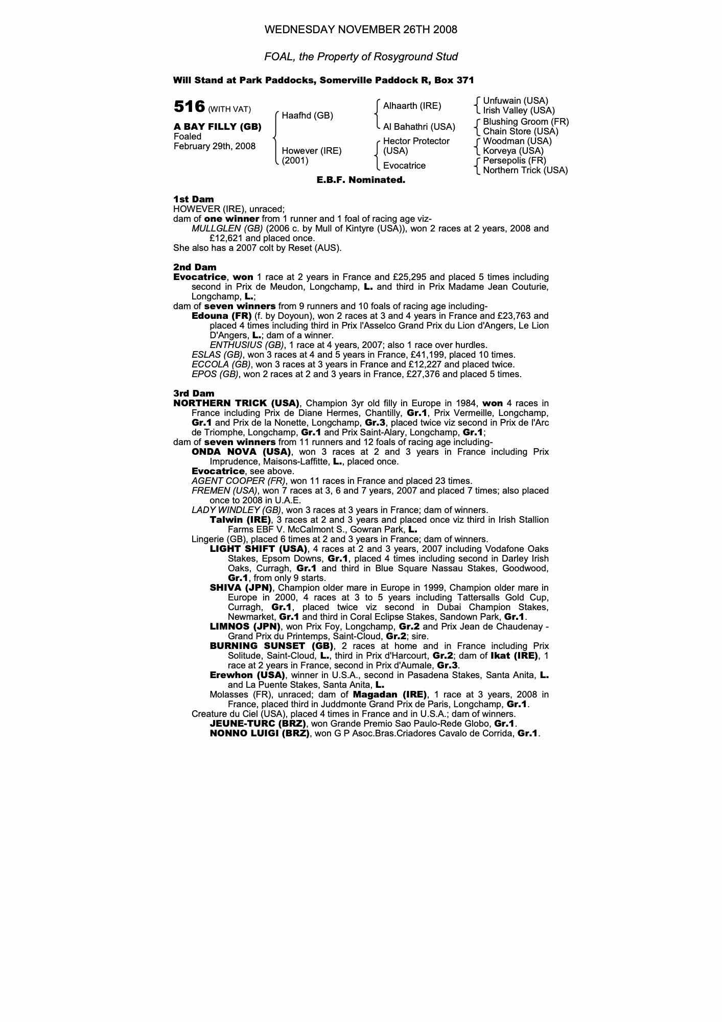 December Yearling Sale 2009 lot 27 F. 2008, Rosyground Stud=>Lot Not Sold 4,800 gns