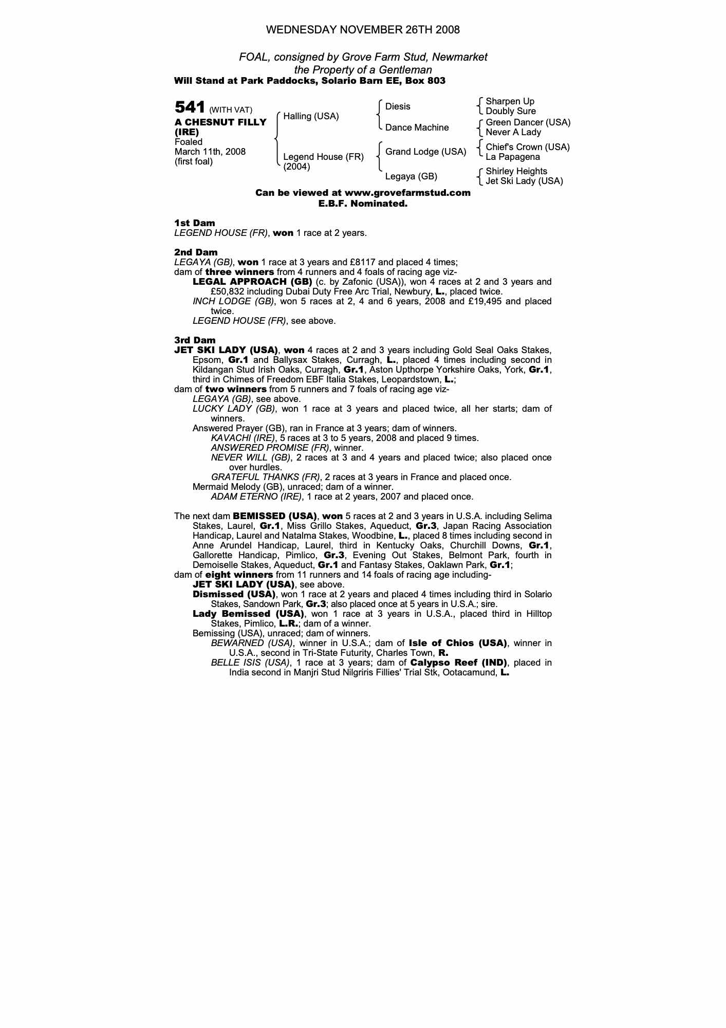 February Sale 2010 lot 138 F. 2008, Grove Farm Stud, Newmarket=>Vendor 3,200 gns