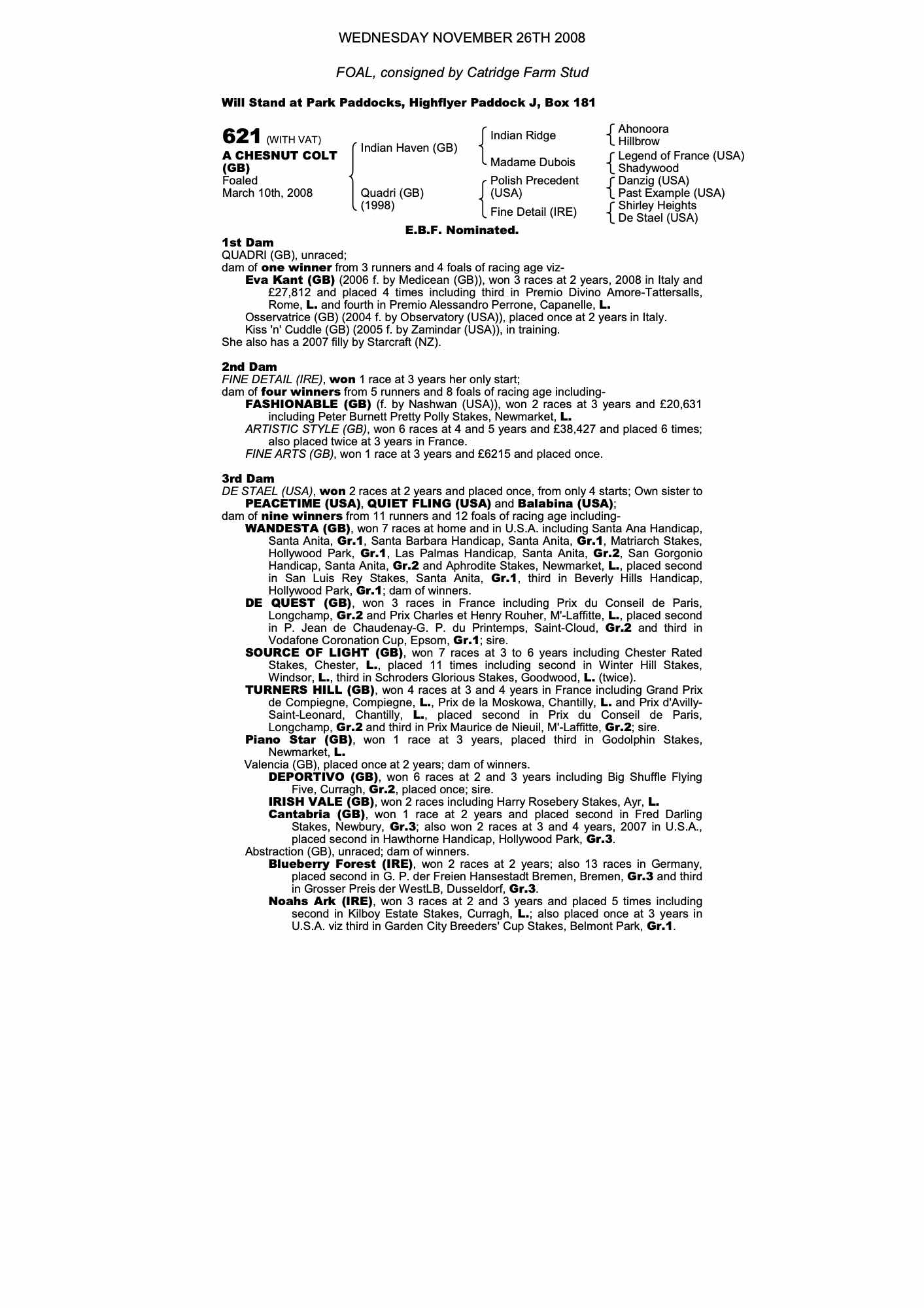 December Yearling Sale 2008 lot 21 F. by Starcraft (NZ) 2007, Catridge Farm Stud=>Lot Not Sold 8,500 gns