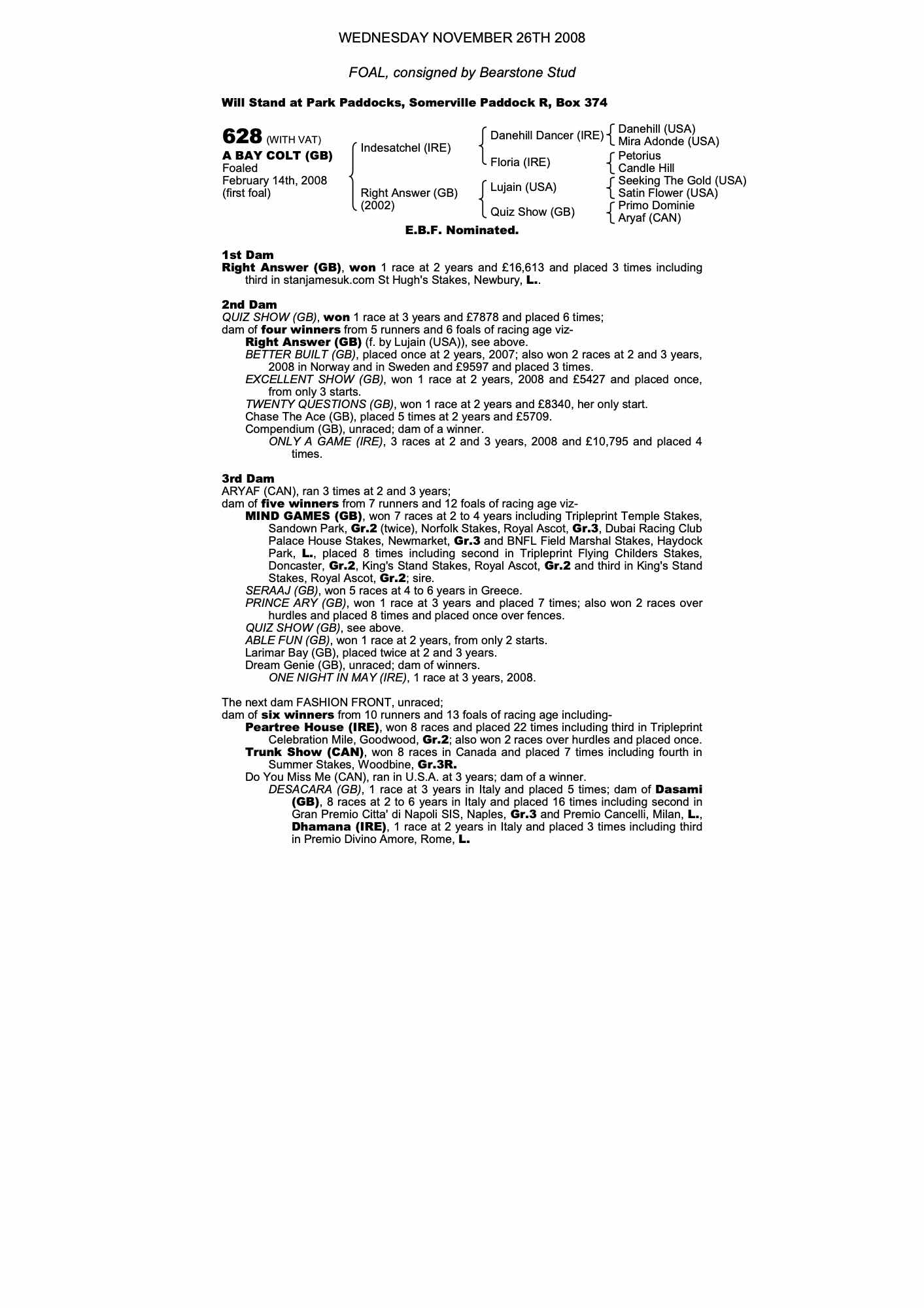 Consignor: Bearstone Stud