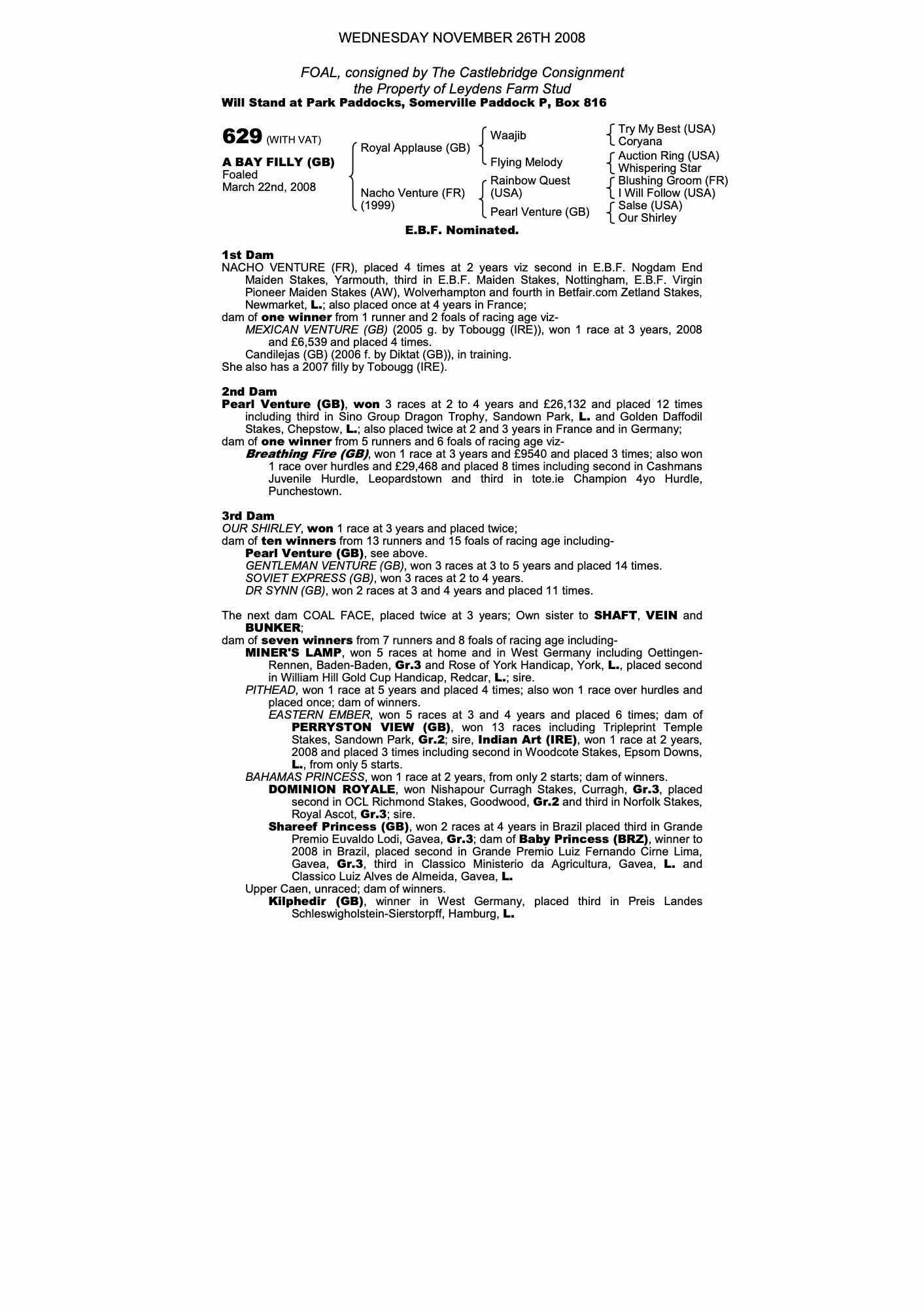 October Yearling Sale, Book 3 2008 lot 1784 F. by Tobougg (IRE) 2007, Jamie Railton, Agent=>Gill Richardson Bloodstock 10,000 gns
